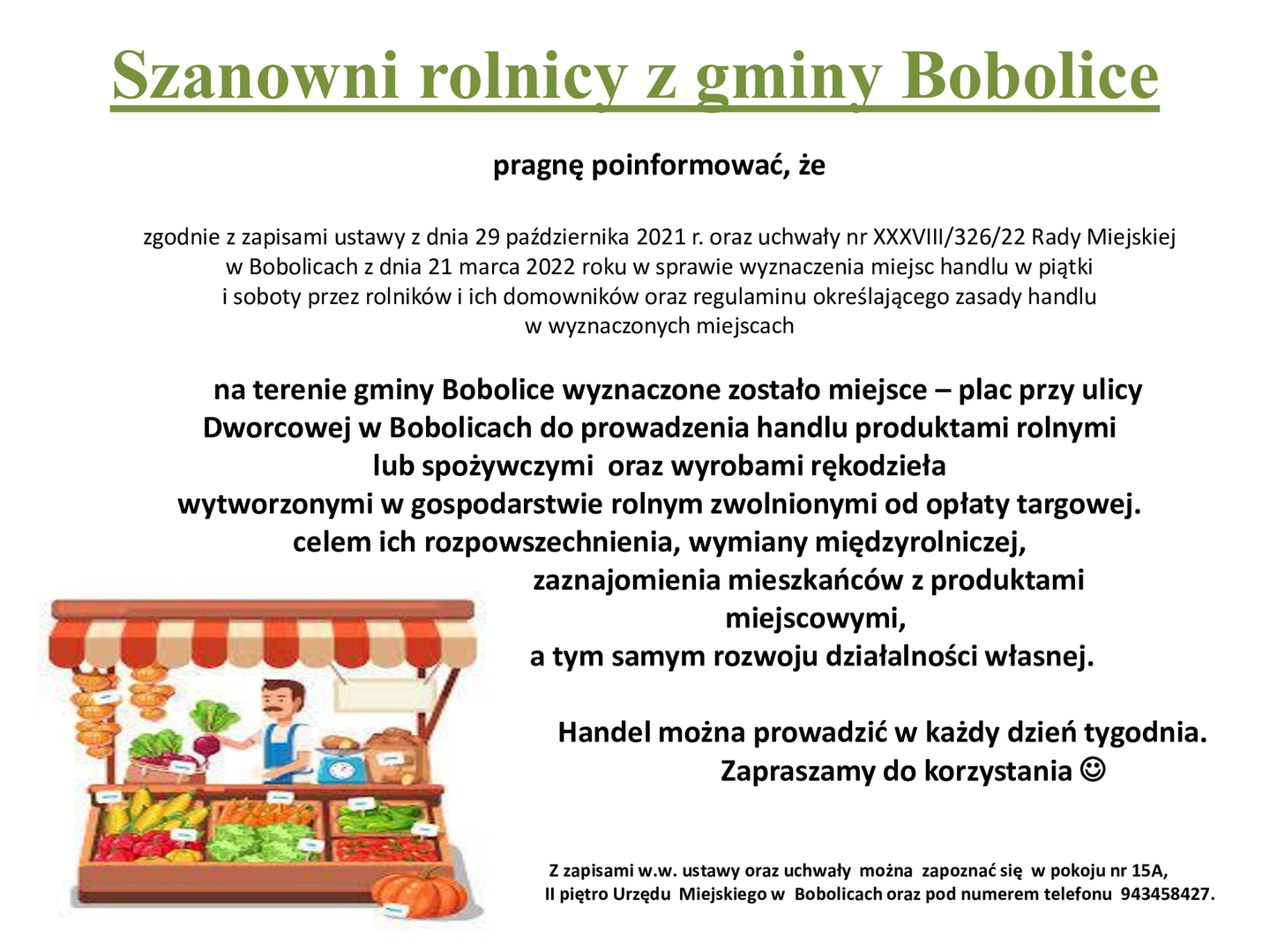 Regulamin targowiska rolno - spożywczego przy ul. Dworcowej w Bobolicach.
