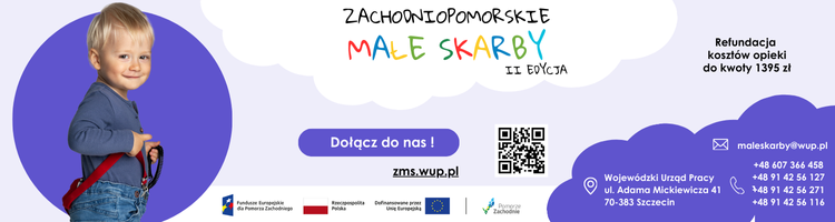 W związku z rozpoczynającymi się rekrutacjami do placówek przedszkolnych na rok szkolny 2025/2026, WUP Szczecin – Realizator projektu pn. „Zachodniopomorskie Małe Skarby – II edycja” przypomina o naborze do projektu. Głównym celem projektu jest wsparcie rodziców dzieci w wieku przedszkolnym, mieszkających na terenie województwa zachodniopomorskiego, w powrocie na rynek pracy / podjęciu zatrudnienia. W ramach projektu refundowane są rodzicom koszty opieki dziecka/dzieci w przedszkolu, tj. 93% z kwoty brutto 1.500,00 zł, tj. maksymalnie 1.395,00 zł miesięcznie na każde kwalifikujące się dziecko, przez okres maksymalnie 12 miesięcy. Refundowane są wyłącznie koszty podstawowej opieki, tj. pobytu i wyżywienia dziecka w placówce. Pozostałe 7% kosztów opieki stanowi wkład własny rodzica.