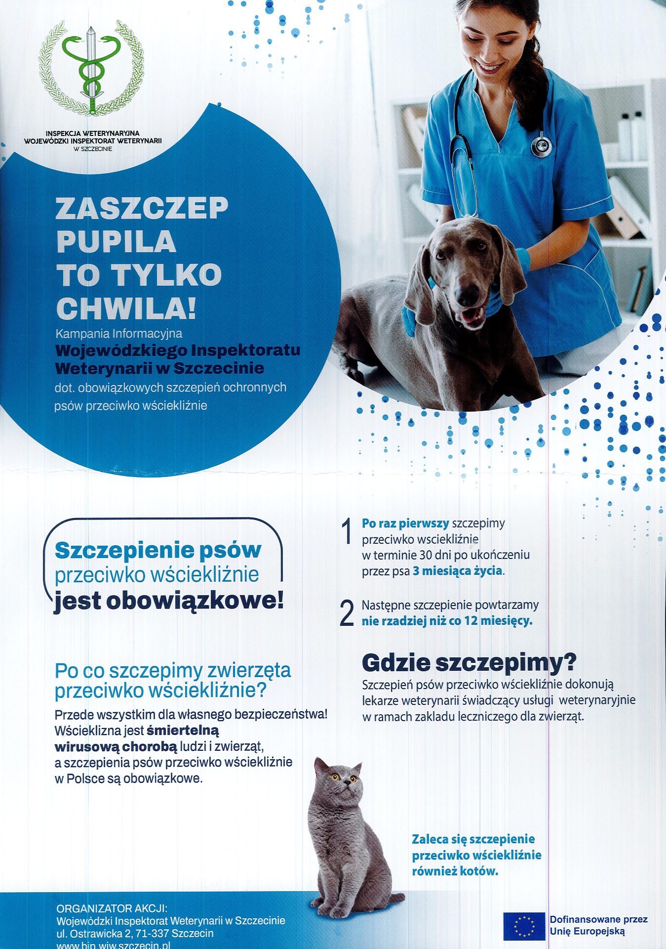 „Zaszczep pupila, to tylko chwila!” ruszyła akcja promująca obowiązkowe szczepienia psów przeciwko wściekliźnie.