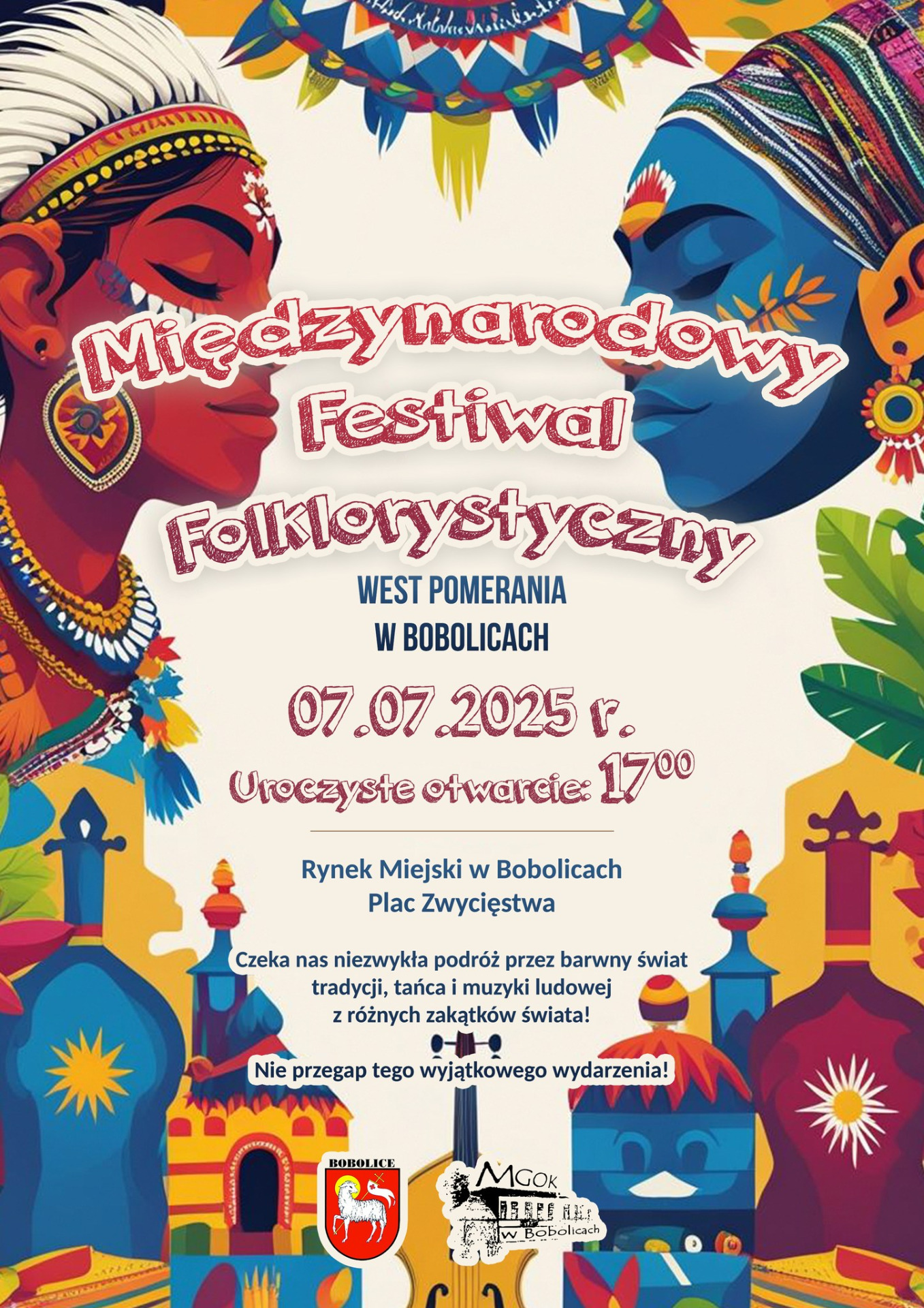 Burmistrz Bobolic - Marek Golas wspólnie z Dyrektor Miejsko - Gminnego Ośrodka Kultury w Bobolicach Emilią Walter zapraszają na jedyny w swoim rodzaju Międzynarodowy Festiwal Folklorystyczny WEST POMERANIA W BOBOLICACH - 7 lipca 2025 r. Uroczyste otwarcie Rynek Miejski w Bobolicach (Plac Zwycięstwa) godz. 17.00