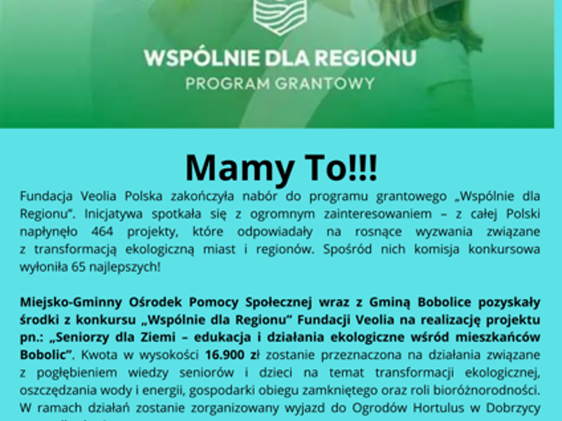 Szanowni Państwo pozyskaliśmy dofinansowanie na realizację projektu z Fundacji Veolia Polska. Rozpoczynamy działania w tym zakresie, czekam nas dużo pracy i zajęć oraz wyjazd do Ogrodów Hortulus w Dobrzycy.