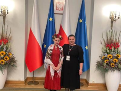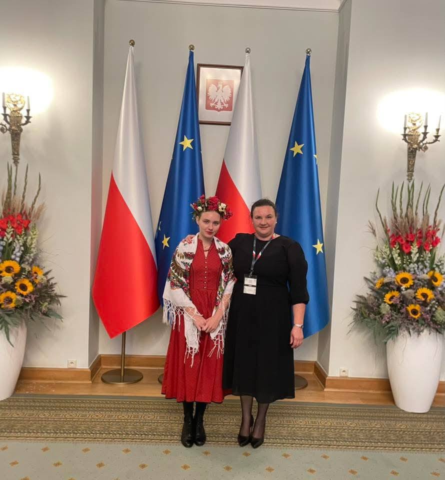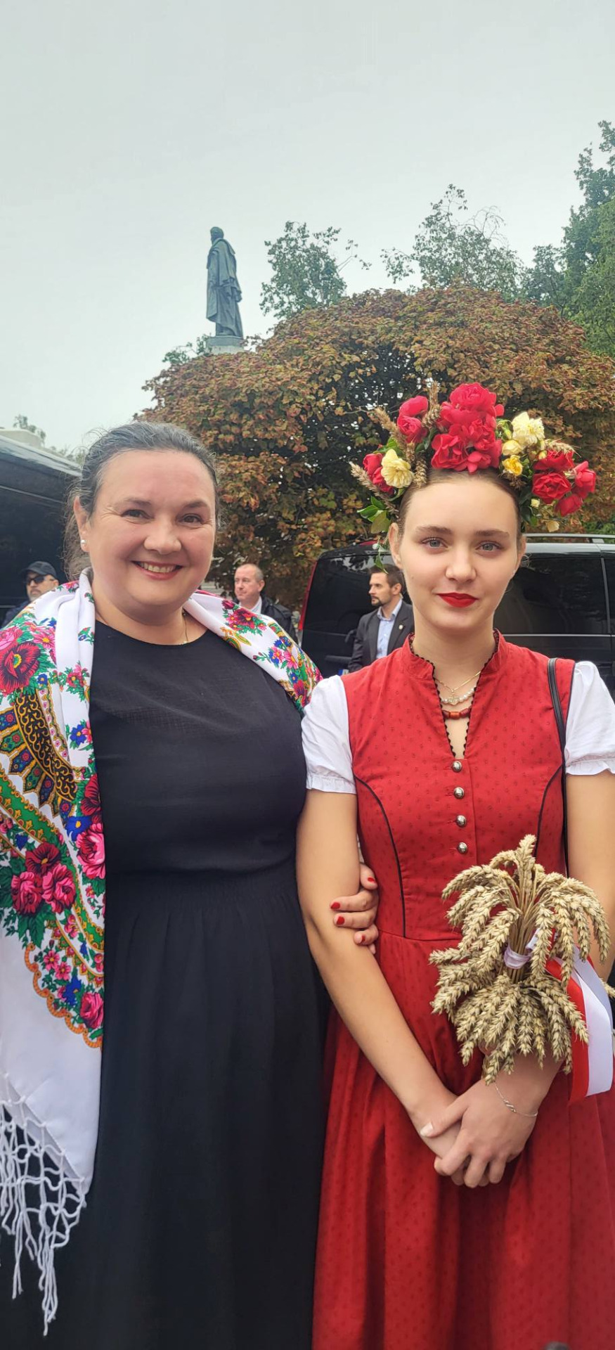 Z dumą informujemy, że Gminę Bobolice podczas tego prestiżowego wydarzenia reprezentowała nasza tegoroczna Starościna Dożynek Gminnych – Claudia Katholm, córka Agnieszka Curyl-Katholm i Stena Katholm. Claudia to 17-letnia mieszkanka Trzebienia, uczennica IV klasy liceum ogólnokształcącego w Szczecinku. W uroczystościach towarzyszyła jej mama – Agnieszka Curyl-Katholm.