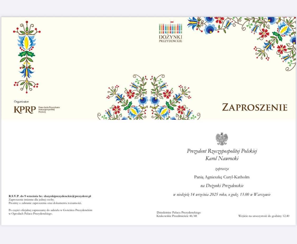 W dniu 14 września 2025 roku w Pałacu Prezydenckim w Warszawie odbyły się tradycyjne Dożynki Prezydenckie – wyjątkowe święto polskiej wsi i rolników, będące podziękowaniem za całoroczny trud pracy na roli oraz okazją do kultywowania pięknych tradycji ludowych.