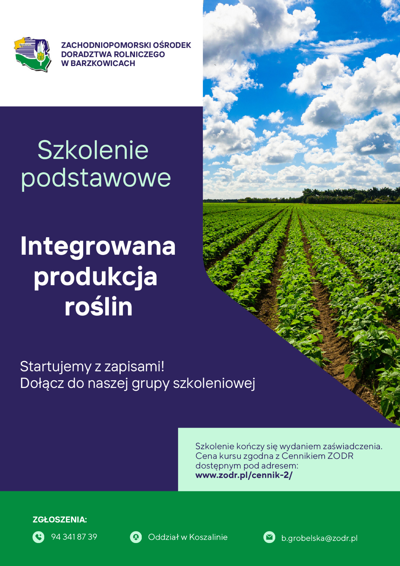Oddział w Koszalinie zbiera chętny na szkolenie Integrowana Produkcja Roślin.