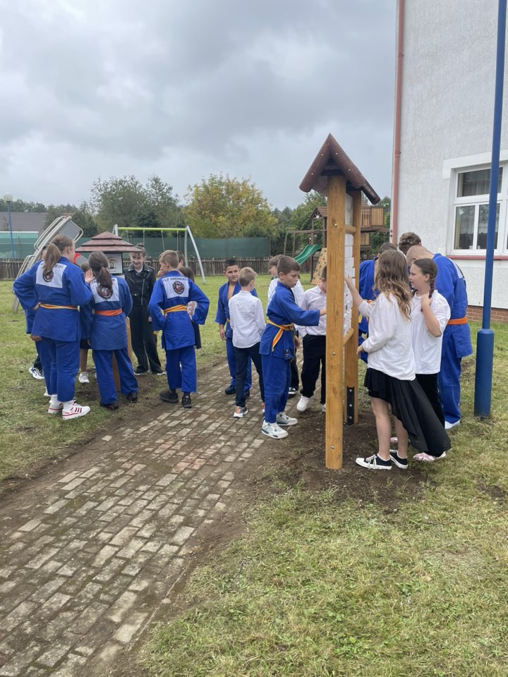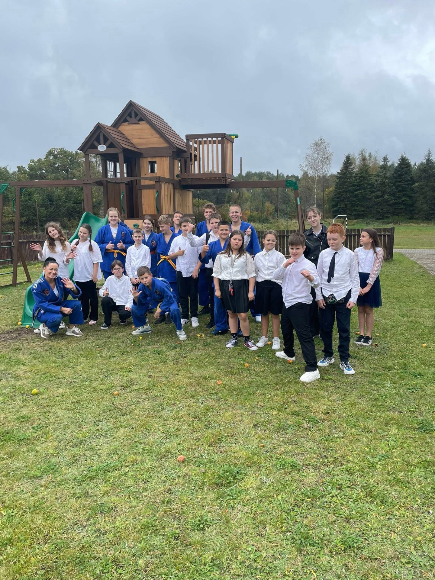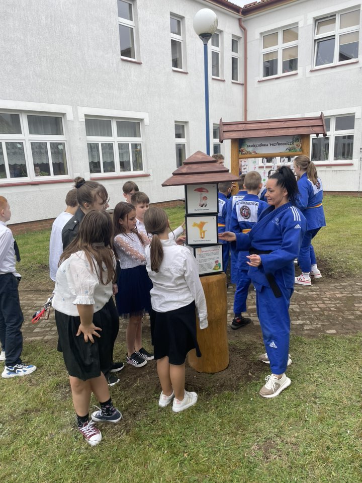 Dzięki zakupionym elementom powstało miejsce przyjazne środowisku, miejsce do treningów wytrzymałościowych, spotkań, nauki, odpoczynku i integracji lokalnego środowiska. Zawodnicy Akademii Judo w Bobolicach przyjechali do naszej szkoły, gdzie zaprezentowali swoje umiejętności, poprowadzili trening judo. Nasi uczniowie chętnie wzięli w nim udział. Ponadto młodzież wzbogaciła swoją wiedzę nt. grzybów jadalnych i niejadalnych, zagrali w pamięciową grę przyrodniczą.