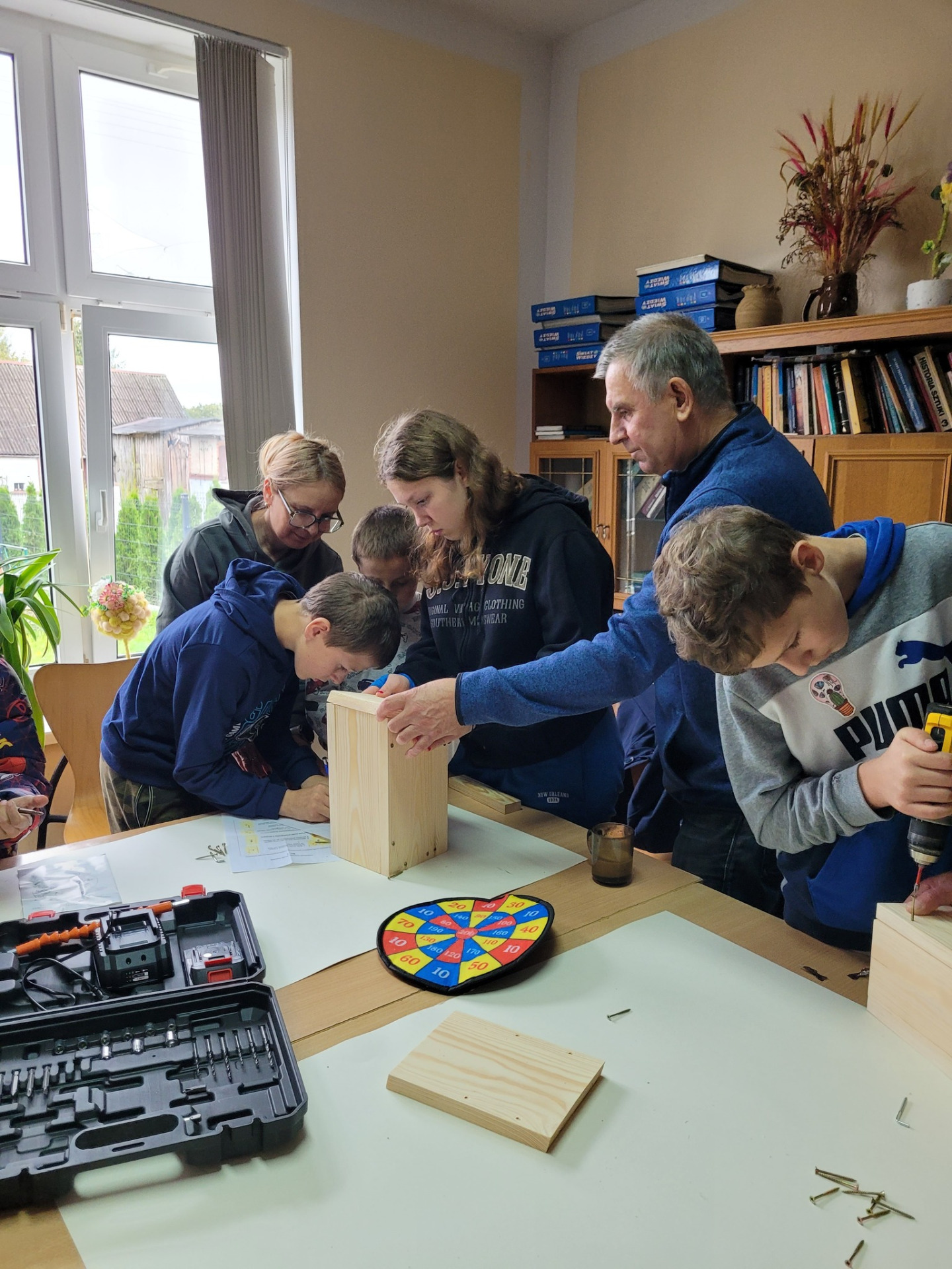 Podczas warsztatów wspólnymi siłami skręciliśmy karmniki i budki dla ptaków, aby zimową porą miały swoje bezpieczne schronienie. Zadbaliśmy także o czystość okolicy – uczestnicy z zapałem posprzątali pobliski las, pozbywając się zalegających tam odpadów. Nie zabrakło również części edukacyjnej – wszyscy wysłuchali ciekawej prelekcji nt. ekosystemu leśnego oraz znaczenia codziennych działań w ochronie środowiska.