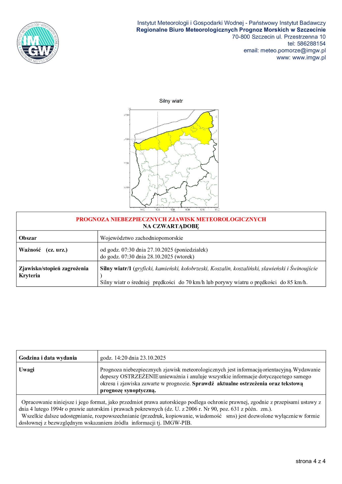 Ostrzeżenie metrologiczne - uwaga silny wiatr
