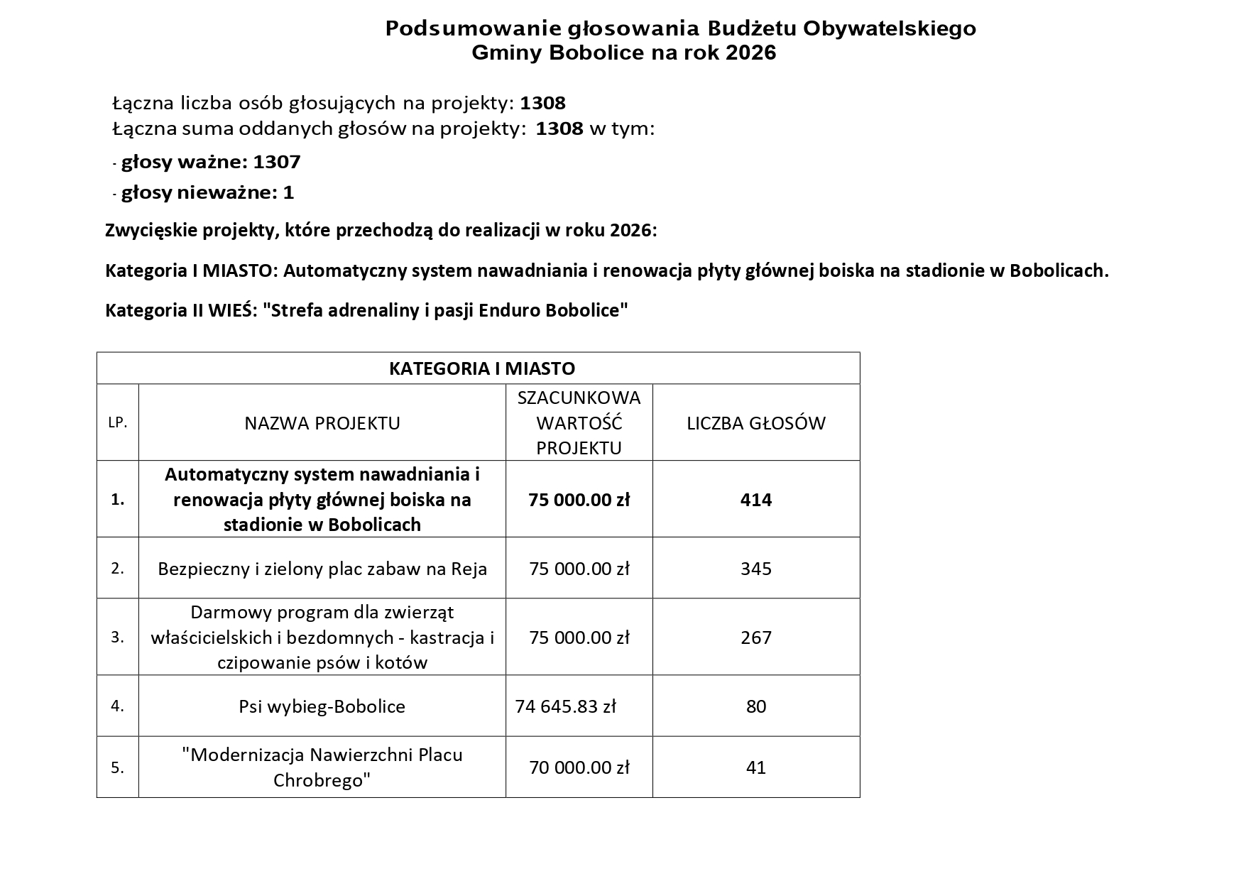 Przedstawiamy wyniki głosowania w tegorocznej edycji Budżetu Obywatelskiego Gminy Bobolice.