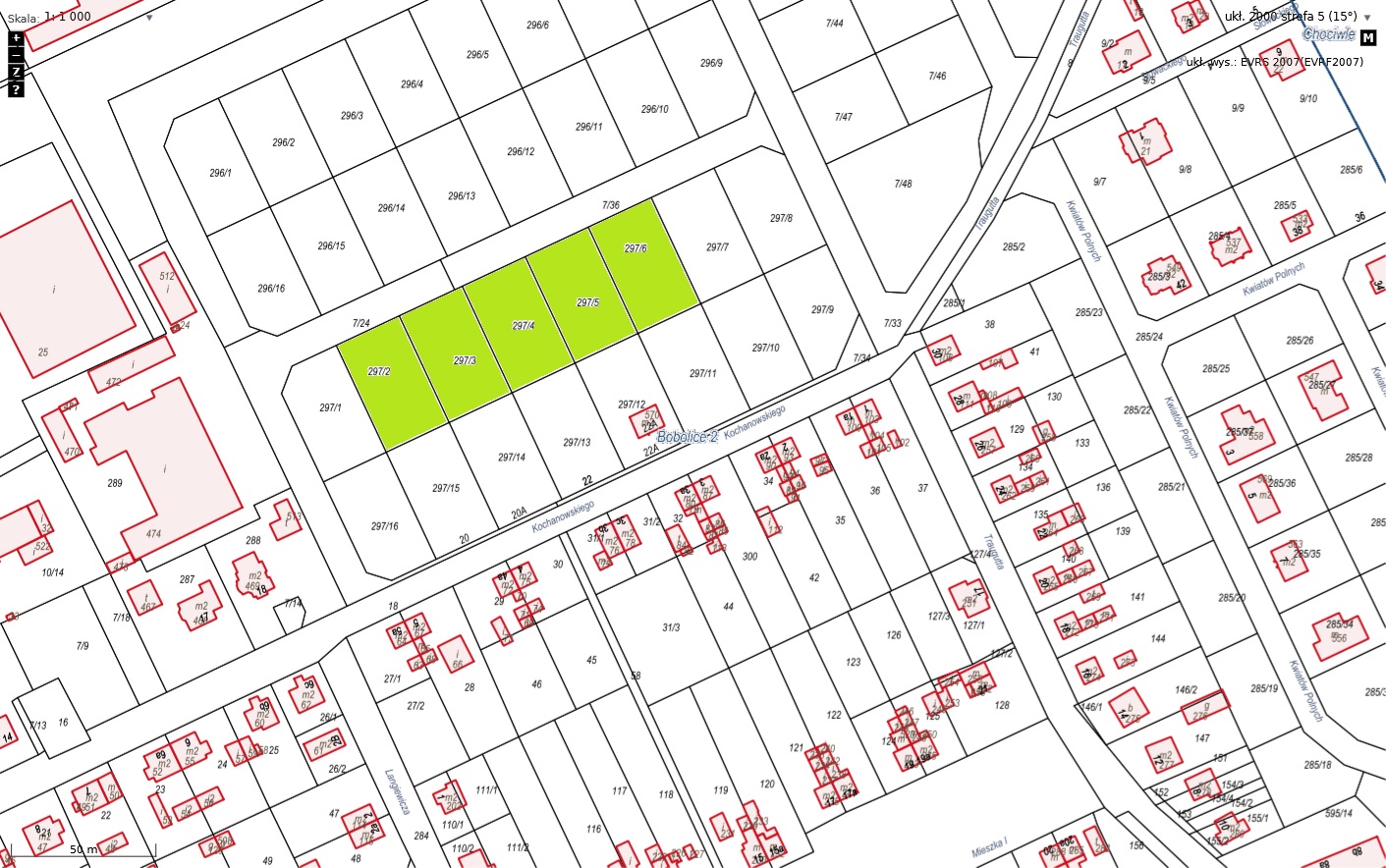 - Działka nr 297/6 o powierzchni 0,1054 ha., cena wywoławcza 53 100,00 zł.
