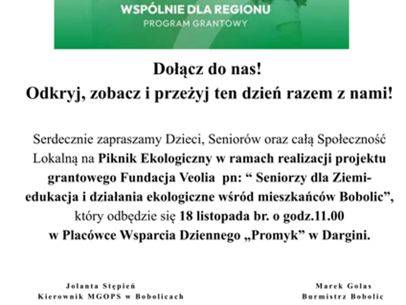 ZAPROSZENIE NA PIKNIK DO DARGINI 18 LISTOPADA