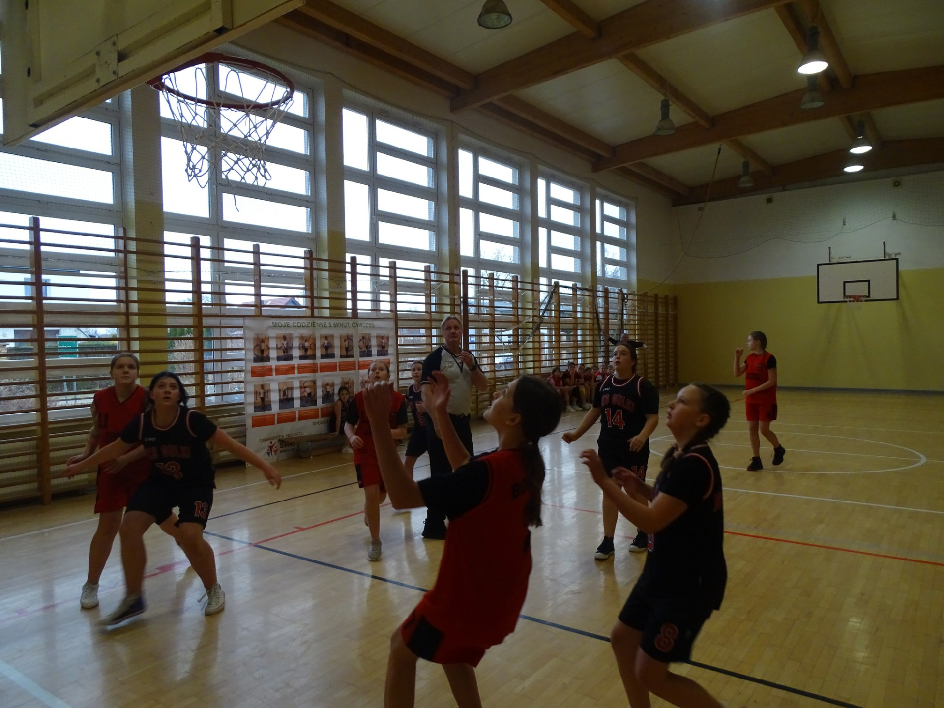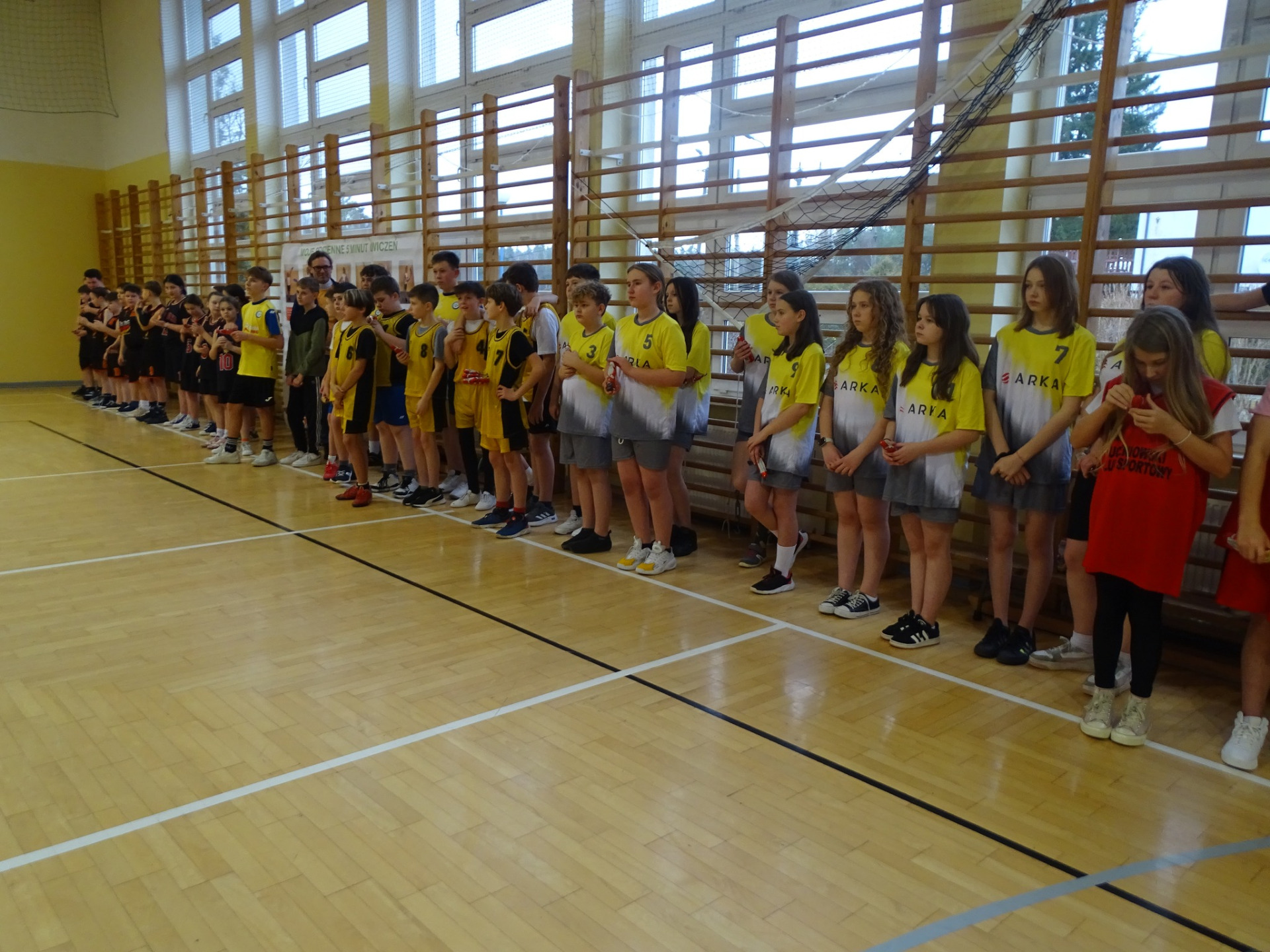 W sali gimnastycznej Szkoły Podstawowej im. Tony’ego Halika w Dargini spotkało się 7 drużyn – 3 dziewczęce i 4 chłopięce. Na parkiecie zobaczyliśmy 52 zawodników, którzy rozegrali 9 meczów w ciągu 3,5 godziny gry! Emocji, walki i efektownych akcji nie brakowało, a głośny doping widowni dodatkowo nakręcał sportową atmosferę.