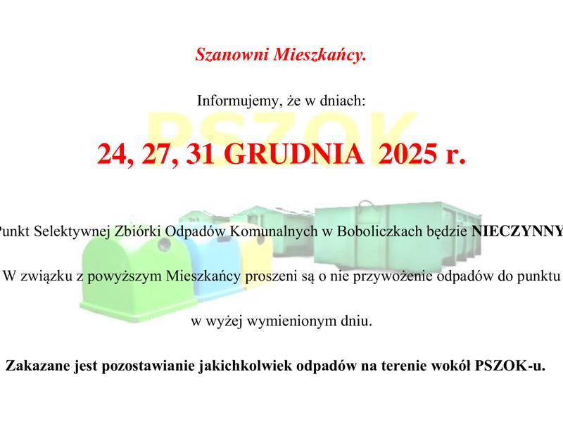 📢 UWAGA! PSZOK NIECZYNNY❗