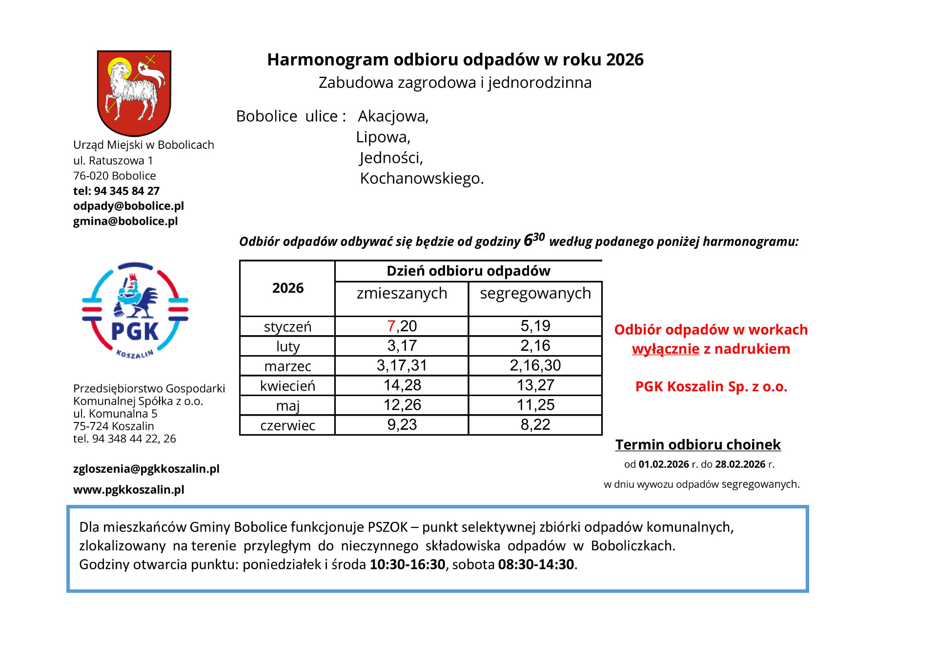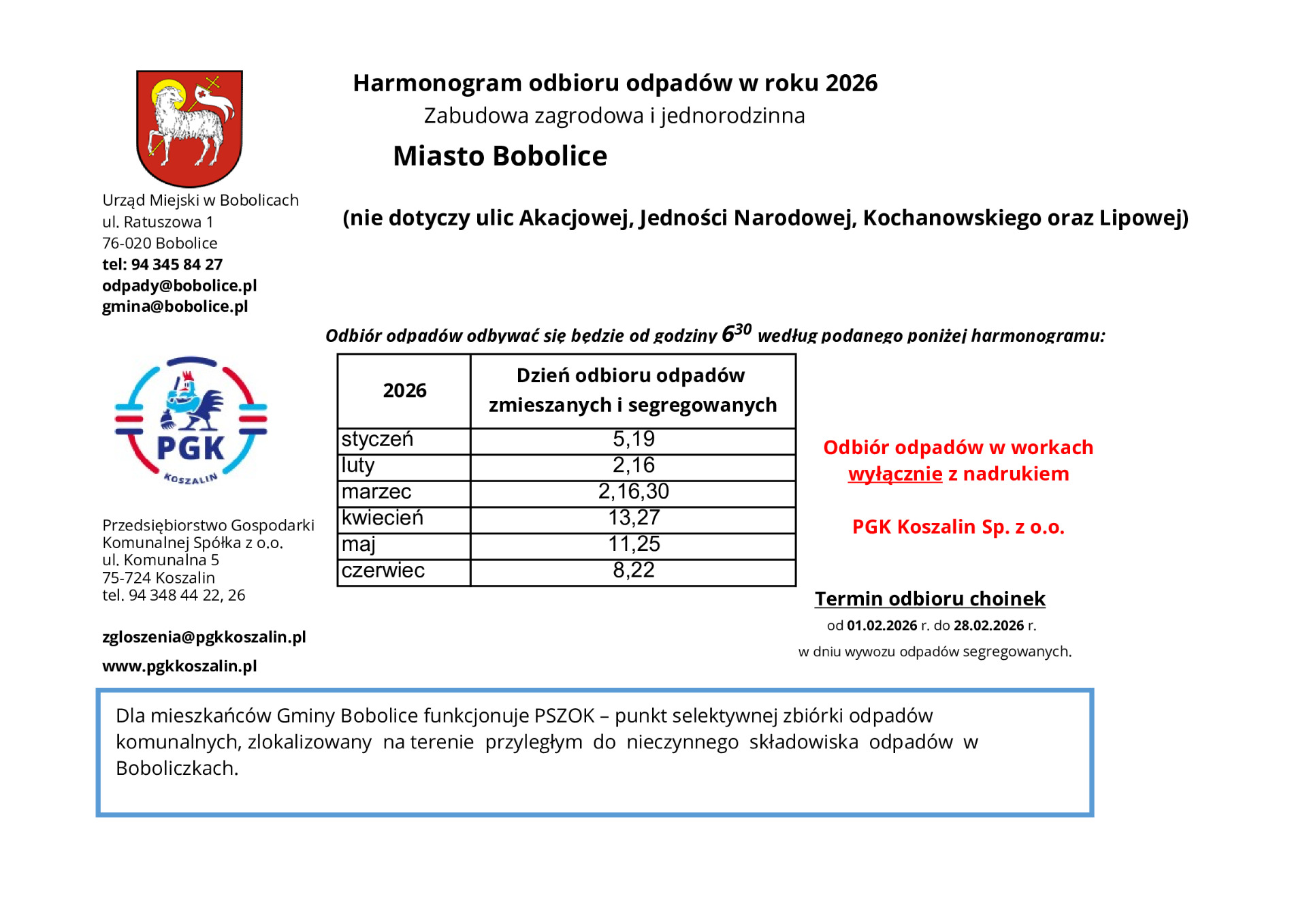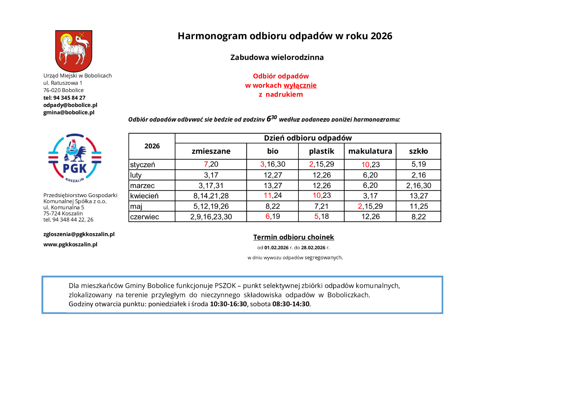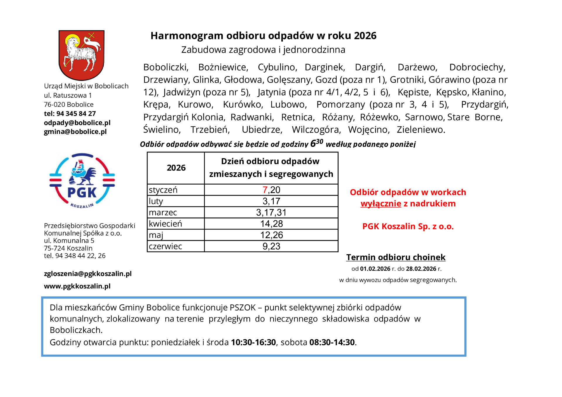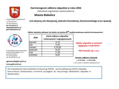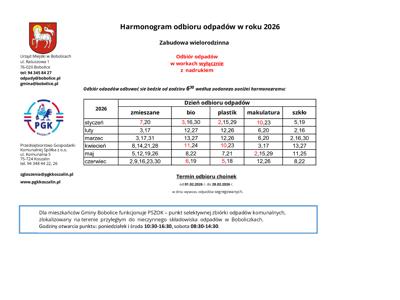 HARMONOGRAM ODBIORU ODPADÓW 2026