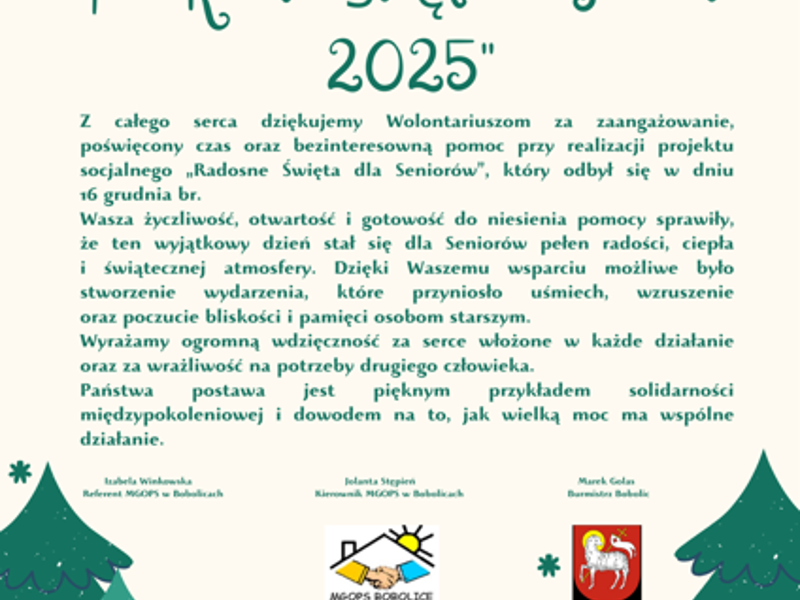 Gminie Bobolice za wsparcie finansowe w wysokości ponad 250 000 zł, przeznaczone zarówno na dofinansowanie zakupu pojazdu, jak i realizację innych programów grantowych realizowanych przez naszą jednostkę,