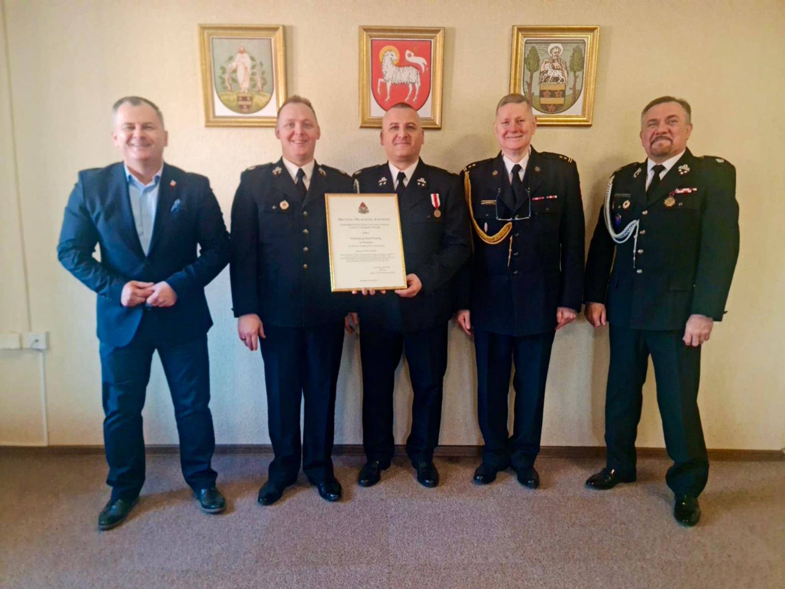 Urzędowi Marszałkowskiemu Województwa Zachodniopomorskiego za wsparcie w wysokości 1 445 000 zł, dzięki któremu możliwy był zakup nowego pojazdu ratowniczo-gaśniczego,