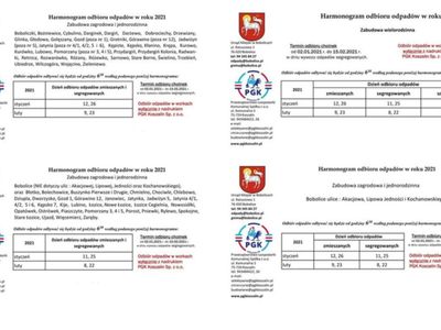 Harmonogram wywozu odpadów styczeń - luty 2021 r.
