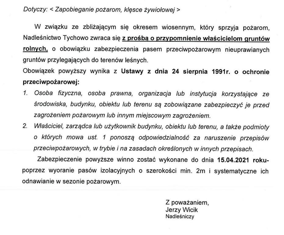 Nadleśnictwo Tychowo informuje