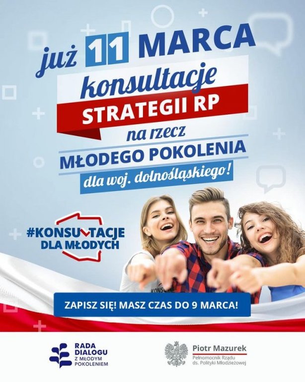 Każdy uczestnik spotkań konsultacyjnych otrzyma certyfikat potwierdzający udział w pracach nad stworzeniem projektu „Strategii RP na Recz Młodego Pokolenia”. Organizatorem konsultacji jest Pełnomocnik Rządu ds. Polityki młodzieżowej Piotr Mazurek wraz z Radą Dialogu z Młodym Pokoleniem - pierwszym w historii Polski organem dialogu obywatelskiego pomiędzy młodym pokoleniem Polaków a najważniejszymi instytucjami państwowymi.