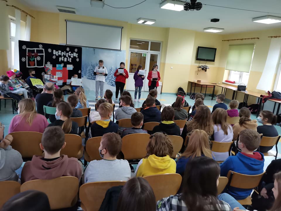 Z okazji zbliżających się „wielkimi krokami” FERII ZIMOWYCH nasza szkoła uczestniczyła w apelu pt. „Bezpieczne ferie”. Spotkanie przygotowały i prowadziły uczennice klasy V i VI. Podczas apelu dziewczynki udzieliły Nam cennych rad i wskazówek dotyczących bezpiecznego wypoczynku podczas ferii zimowych oraz przypomniały obowiązujące numery telefonów alarmowych(999 – Pogotowie Ratunkowe, 998 – Straż Pożarna, 997- Policja, 112- numer alarmowy). WSZYSTKIM ŻYCZYMY UDANEGO I ZDROWEGO WYPOCZYNKU.
