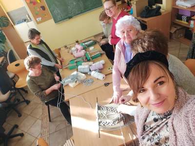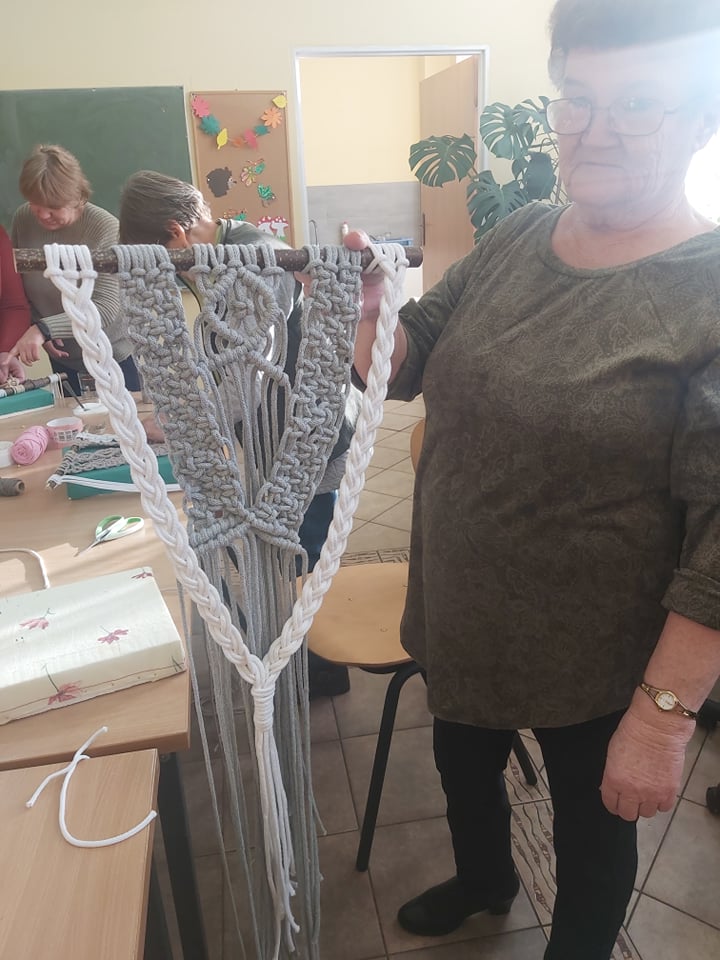 18 stycznia zakończyły się zajęcia artystyczne prowadzone dla Klubowiczów z Klubu Seniora w Poroście. Pani Izabela Helman starała się „zarazić” seniorki pasją do makramy. Panie były zadowolone, jednak okazuje się, że plecenie sznurków, różne sploty i inne zawiłości tej sztuki nie są takie proste jak by się wydawało. Panie tworzyły ozdobę ścienną z makramy.