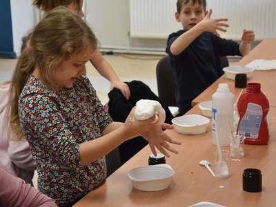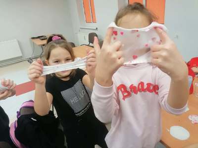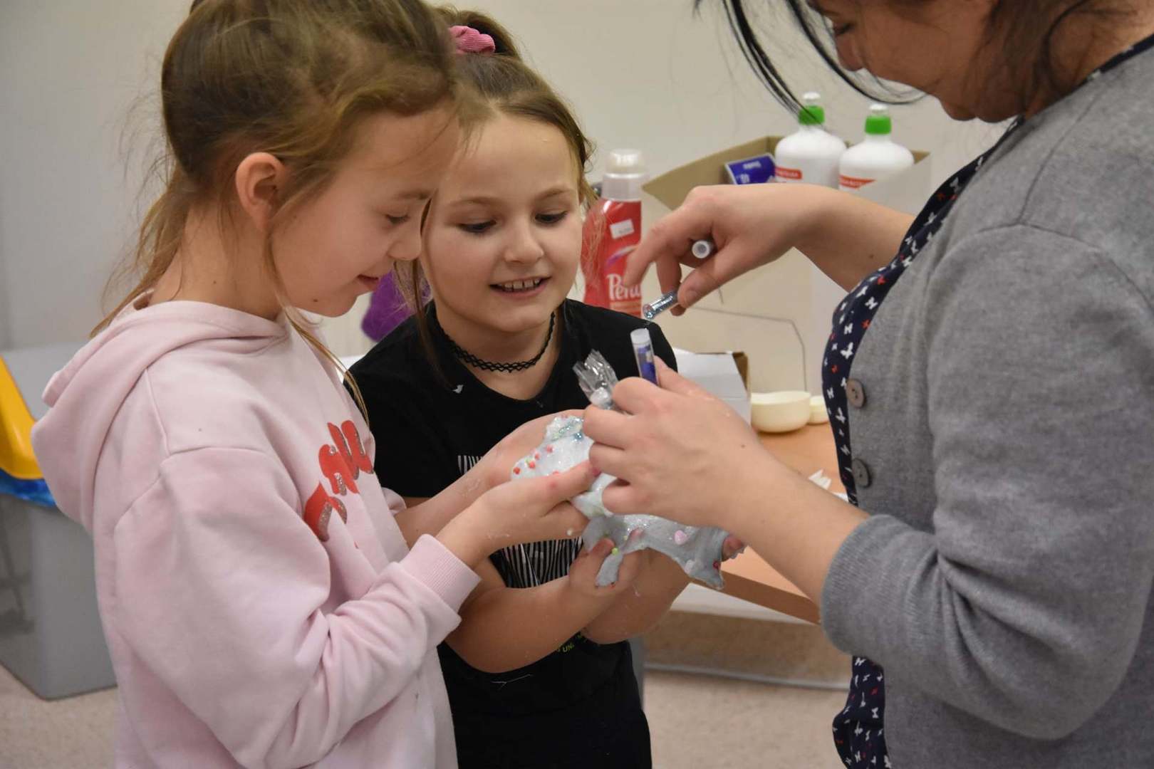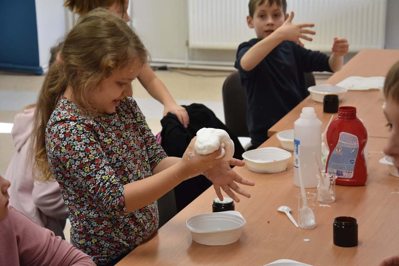 W naszym bobolickim Ośrodku Kultury trwają zimowe zajęcia dla dzieci i młodzieży. Ferie zaczęliśmy od Fabryki Naukowców czyli Slime w wielu wydaniach. Zabawy nie było dość, a dzieci dowiedziały się jak podstawowy przepis zmienić w kilka odsłon naszego glutka aby był błyszczący, pachnący, biały, z dodatkami ,a nawet z piaskiem kinetycznym. Radości z zabawy nie było końca !