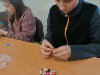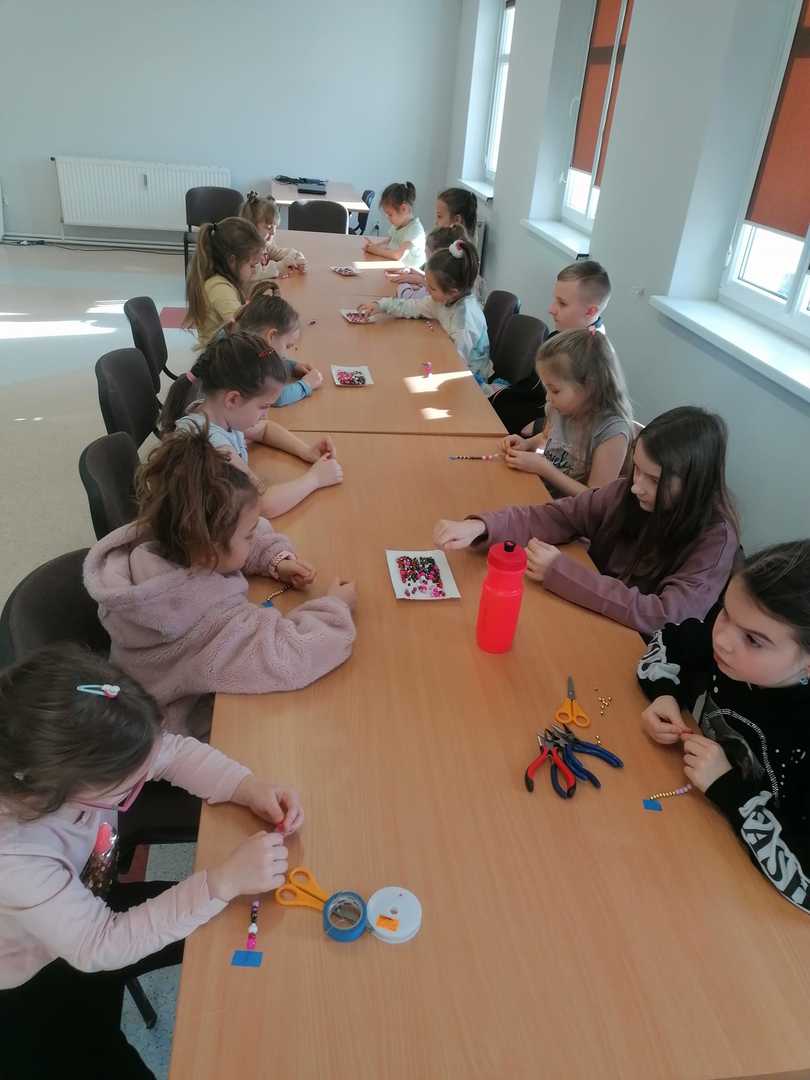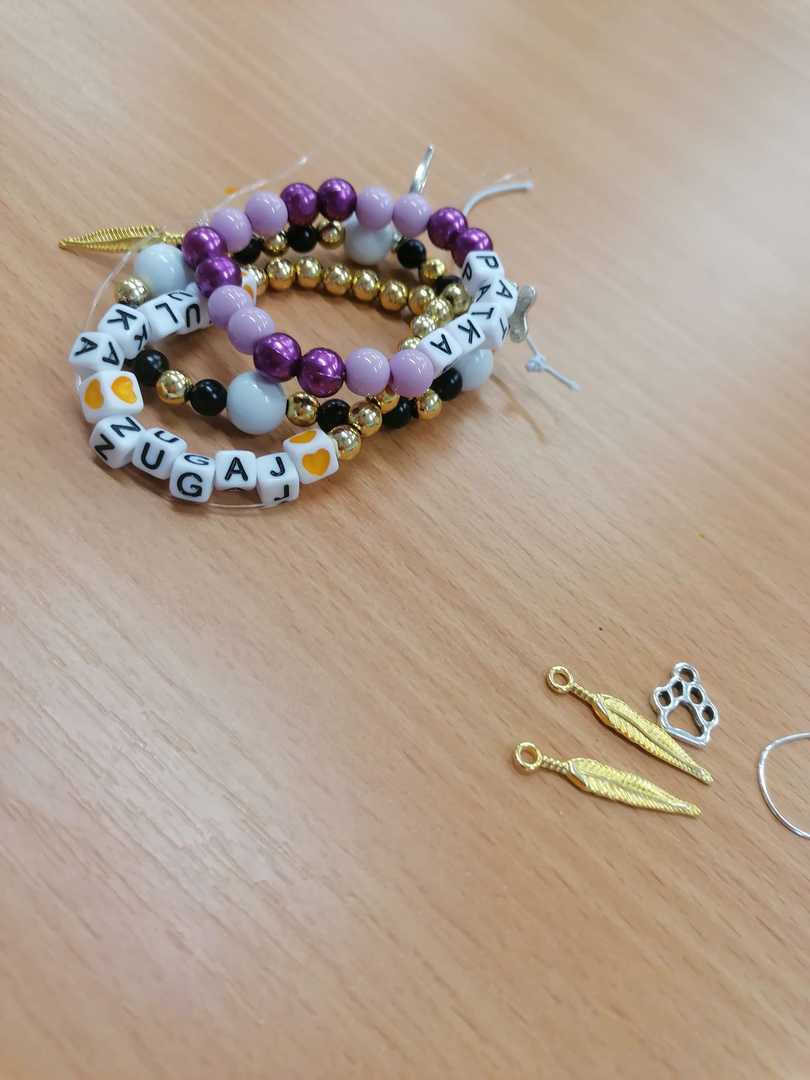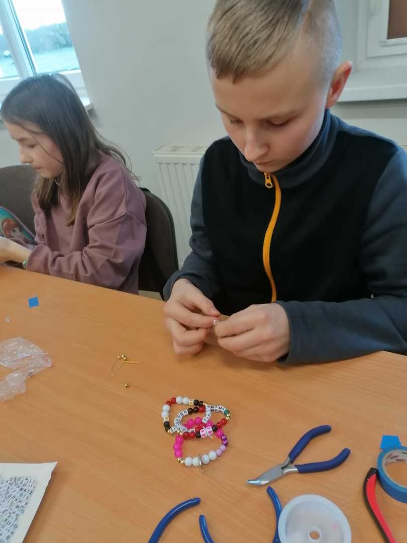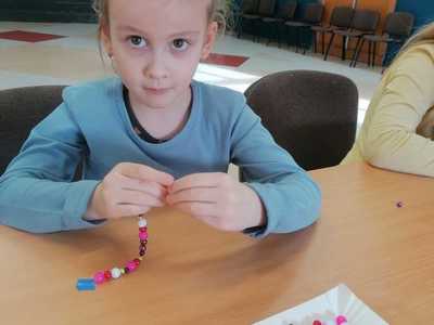 Zrobiliśmy mnóstwo bransoletek zaprojektowanych przez uczestników zajęć oraz kolczyki, które naprawdę prezentują się pięknie i napewno sprawią przyjemność nie jednej mamie![]()