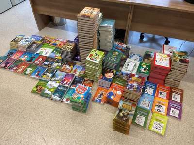 i wkładowi własnemu w kwocie 3 000 zł udało nam się zakupić około 664 nowych książek – lektur i nowości wydawniczych, elementów wyposażenia biblioteki m.in. drukarki, rozdzielaczy bibliotecznych z opisem, rozdzielaczy alfabetycznych, podpórek do książek oraz materiałów promocyjnych, foteli biurowych, stalowych składanych schodków, tablicy tekstylnej na kółkach, zamykanej szafki na dokumentację.