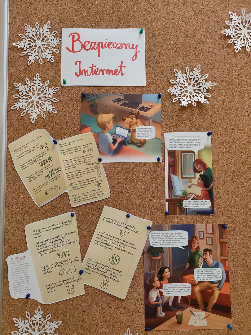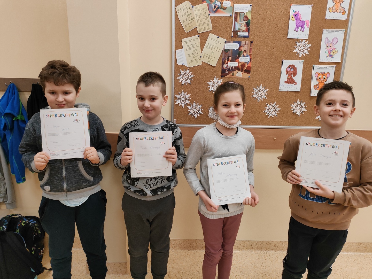 W lutym w ramach Dni Bezpiecznego Internetu w świetlicy szkolnej zostały przeprowadzone zajęcia, podczas których omówiono podstawowe zasady rozsądnego korzystania z Internetu. Uczniowie uczestnicząc w zajęciach korzystali z materiałów edukacyjnych pt. „SKO- WICZ. BEZPIECZNY W SIECI”. Dzieci wykonały zadania oraz odgadywały rebusy i zagadki. Podsumowaniem zadania było wspólne wykonanie z nauczycielem gazetki ściennej.