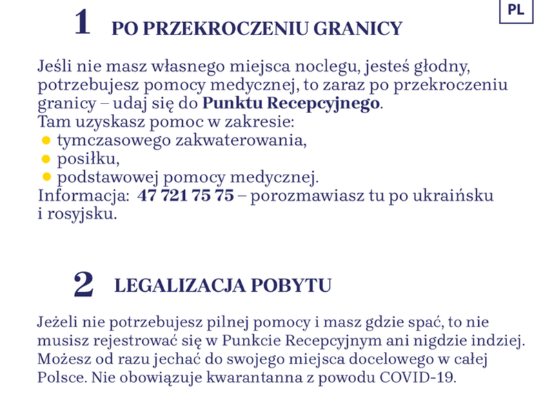 Ulotki informacyjne dla uchodźców wojennych z Ukrainy, którzy...