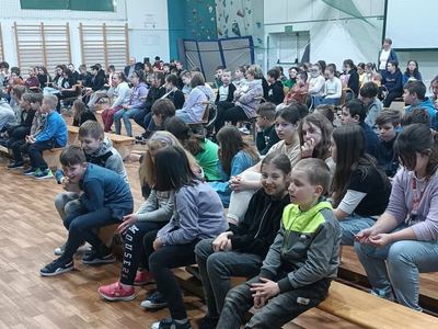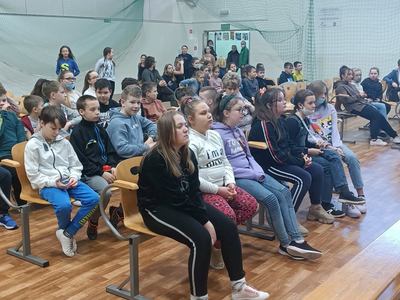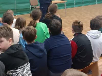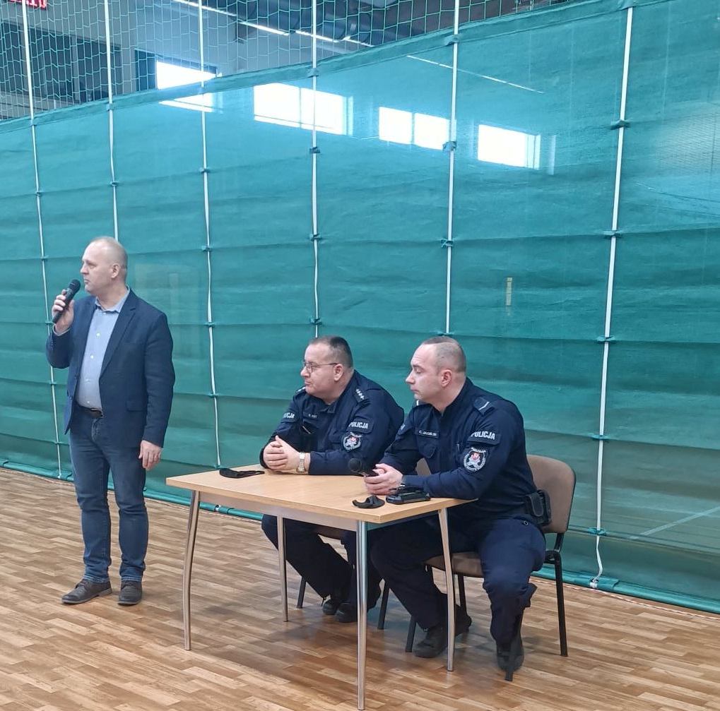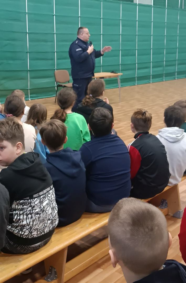 i młodzież znajomości z nieznajomymi przez Internet. Ponadto zaznaczyli, iż wszelkie zdjęcia i informacje, które umieszczane są w sieci pozostają tam na zawsze. W jasny sposób wytłumaczyli, na czym polega odpowiedzialność wobec prawa za demoralizację i za popełnienie czynu karalnego. Dzielnicowi także uświadomił uczniom jakie niosą zagrożenie dla zdrowia, nawet życia e –papierosy, alkohol, środki psychoaktywne. Wszyscy z dużym zainteresowaniem słuchali rad zaproszonych gości oraz uzyskali odpowiedzi na nurtujące ich pytania.