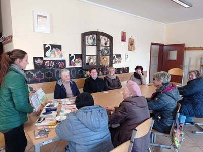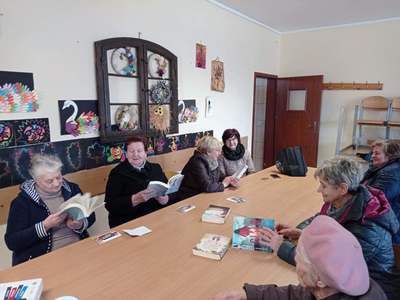 21 marca br. miałyśmy przyjemność gościć w Klubie Seniora w Kłaninie. Podczas spotkania zaprezentowana została oferta czytelnicza Biblioteki m.in. książki z serii Wielkie Litery oraz akcesoria do czytania, które są dostępne w naszej placówce. Paniom przedstawione zostały również trwające konkursy, które realizowane są w ramach projektu pn. „Z Biblioteką możesz więcej” ze środków Fundacji ORLEN w ramach Programu "Moje miejsce na Ziemi".