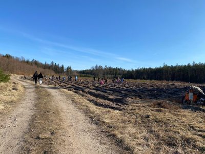Młodzież dzielnie sadziła drzewko za drzewkiem, pod bacznym okiem leśników.