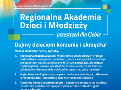 - Platformy usług specjalistycznych Regionalnej Akademii Dzieci i Młodzieży – pogotowie „emocjonalne” dla dzieci i młodzieży prowadzone online wraz z treściami dotyczącymi aktualnych problemów.