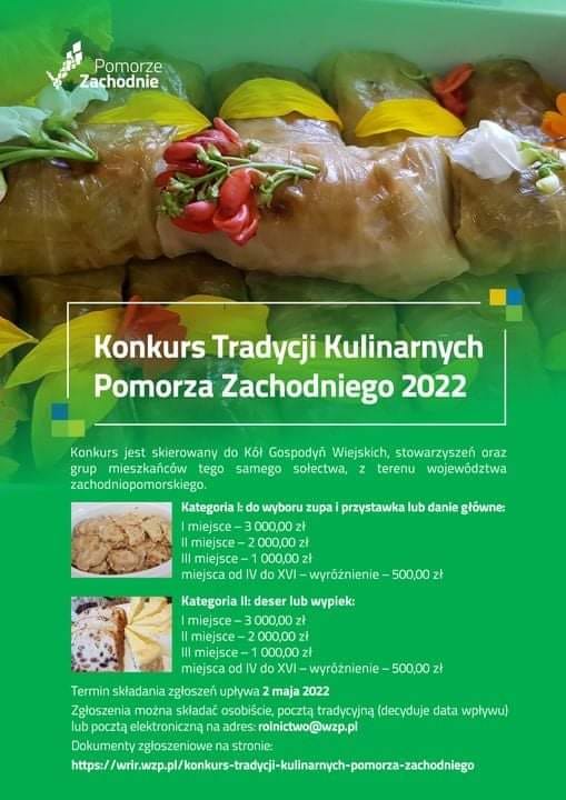 Zarząd Województwa Zachodniopomorskiego ogłasza pierwszą edycję konkursu pn. „Konkurs Tradycji Kulinarnych Pomorza Zachodniego” 2022