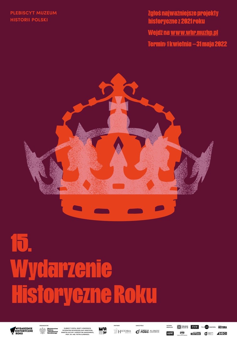 Muzeum Historii Polski, we współpracy z portalem historia.org.pl, po raz piętnasty ogłasza Plebiscyt „Wydarzenie Historyczne Roku”, którego celem jest uhonorowanie organizatorów, twórców oraz inicjatorów najciekawszych przedsięwzięć historycznych w minionym roku. Zgłoszenia przyjmowane są od 1 kwietnia do 31 maja 2022 r. przez stronę www.whr.muzhp.pl.