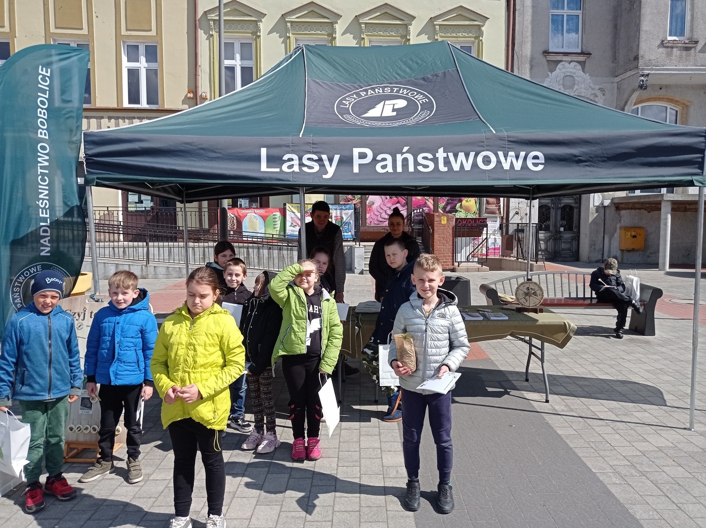 W ten bardzo wietrzny piątek, tj. 22 kwietnia, na Rynku Miejskim w Bobolicach we współpracy z Miejsko-Gminna Biblioteka Publiczna w Bobolicach przeprowadziliśmy akcję edukacyjną - w ramach Międzynarodowego Dnia Lasów.