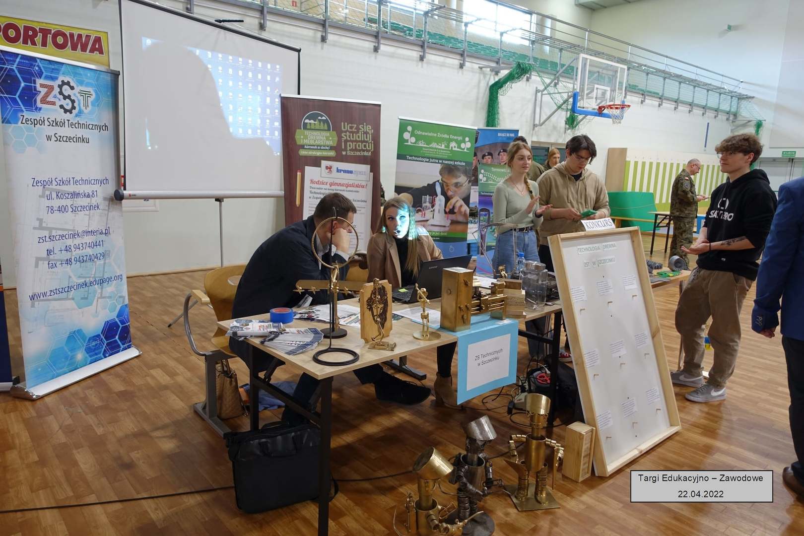 ZSM z Darłowa, TL w Warcinie, ZSCKR im. Wincentego Witosa w Boninie, Z S z Karlina oraz Z S z Gościna. Każda szkoła miała własne stoisko, przy którym nasi uczniowie mogli zasięgać informacji, porozmawiać ze starszymi kolegami, nabyć ulotki i foldery informacyjne. Wszystkie szkoły miały także zarezerwowany czas na zaprezentowanie swoich atutów i zachęcenie młodzieży do wyboru ich oferty.
