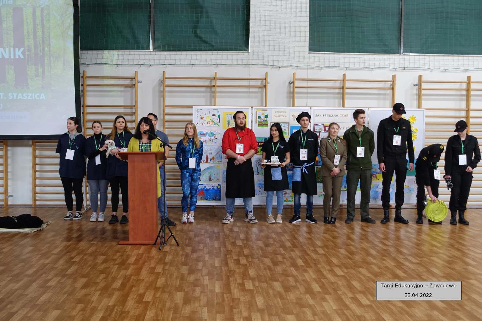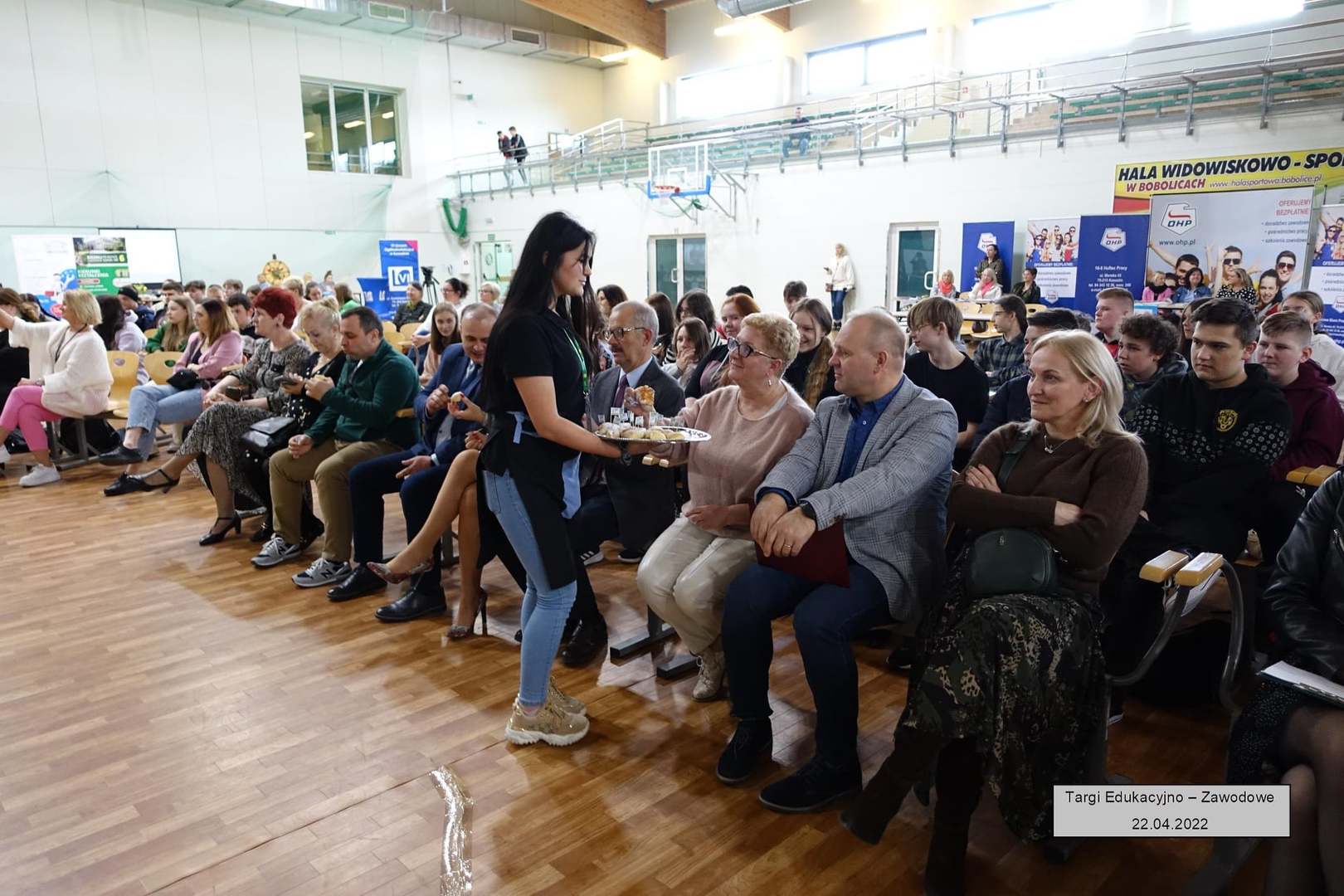 im. H. Sienkiewicza w Bobolicach pan Dariusz Michalak, który przywitał uczestników targów, zaproszonych gości, panią Mieczysławę Brzozę Burmistrz Bobolic, pana Andrzeja Kaczanowicza Kierownika Referatu Obsługi Zamiejscowej w Bobolicach PUP w Koszalinie, przewodniczącego Rady Miejskiej pana Franciszka Łobockiego, przewodniczącego Komisji ds. Oświaty, Kultury i Sportu pana Jarosława Bączkowskiego, dyrektorów szkół gminy Bobolice – p. A. Jasińską, p. I. Golas i p. L. Posełkiewicz oraz wicedyrektor SP Bobolice p. Grażynę Jankowską. Rodziców reprezentowała p. Grażyna Ptak przewodnicząca Rady Rodziców. Podczas uroczystości głos zabrała również Burmistrz Bobolic p. Mieczysława Brzoza, która w swoim przemówieniu życzyła ósmoklasistom trafnego wyboru przyszłej szkoły, wskazała także na duże znaczenie szkolnictwa branżowego w odniesieniu do zapotrzebowania na współczesnym rynku pracy.