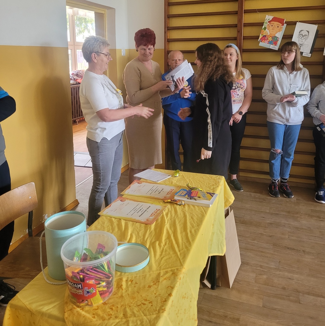 W dniu 29.04.22 r. w Szkole Podstawowej w Kłaninie obchodziliśmy Dzień Patrona. Uczniowie w ramach obchodów tej uroczystości utrwalali wiedzę na temat życia i twórczości Jana Brzechwy, wykonując wspólnie różne zadania - musieli ułożyć rozsypane wiersze, rozpoznać ilustracje do wierszy oraz ich fragmenty, rozwiązać test o Janie Brzechwie a także stworzyć ilustrację do wiersza poety. Podsumowane zostały także konkursy literacki „List do Jana Brzechwy” oraz „Wywiad z Janem Brzechwą” , plastyczny „Portret Jana Brzechwy” a także Szkolny Turniej Tenisa Stołowego. Nasza uroczystość została dofinansowana przez Gminną Komisję Rozwiązywania Problemów Alkoholowych. Wszystko udało się świetnie i dobrze się bawiliśmy.
