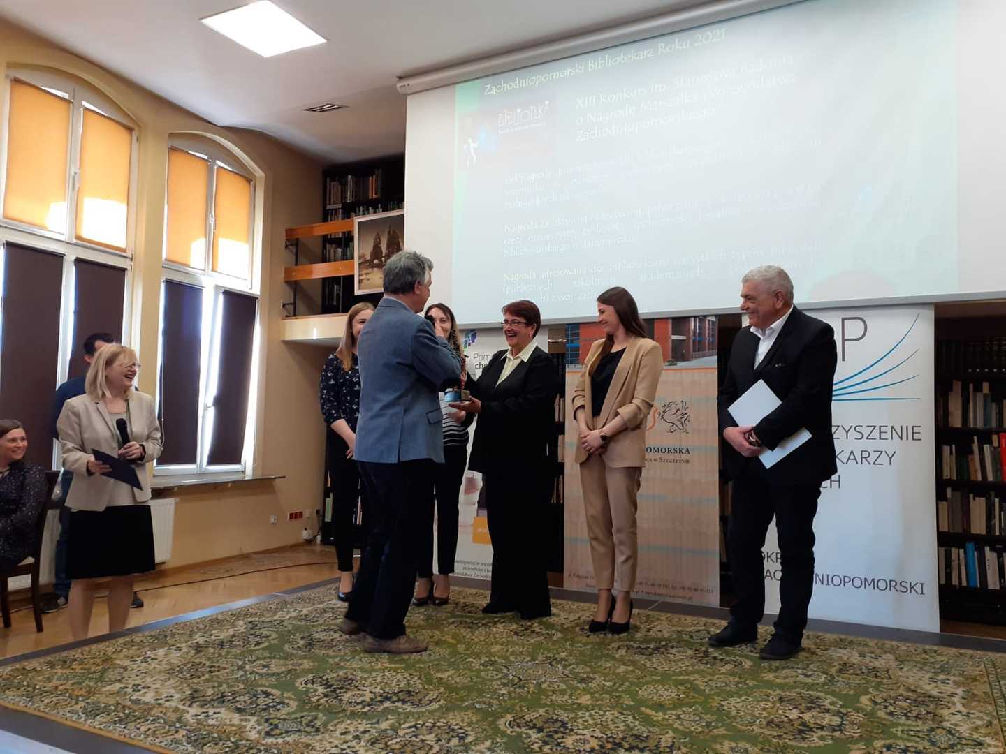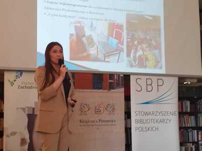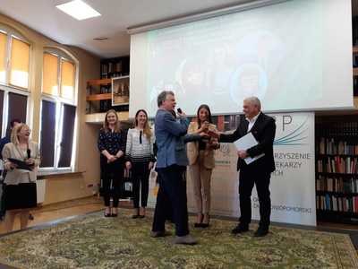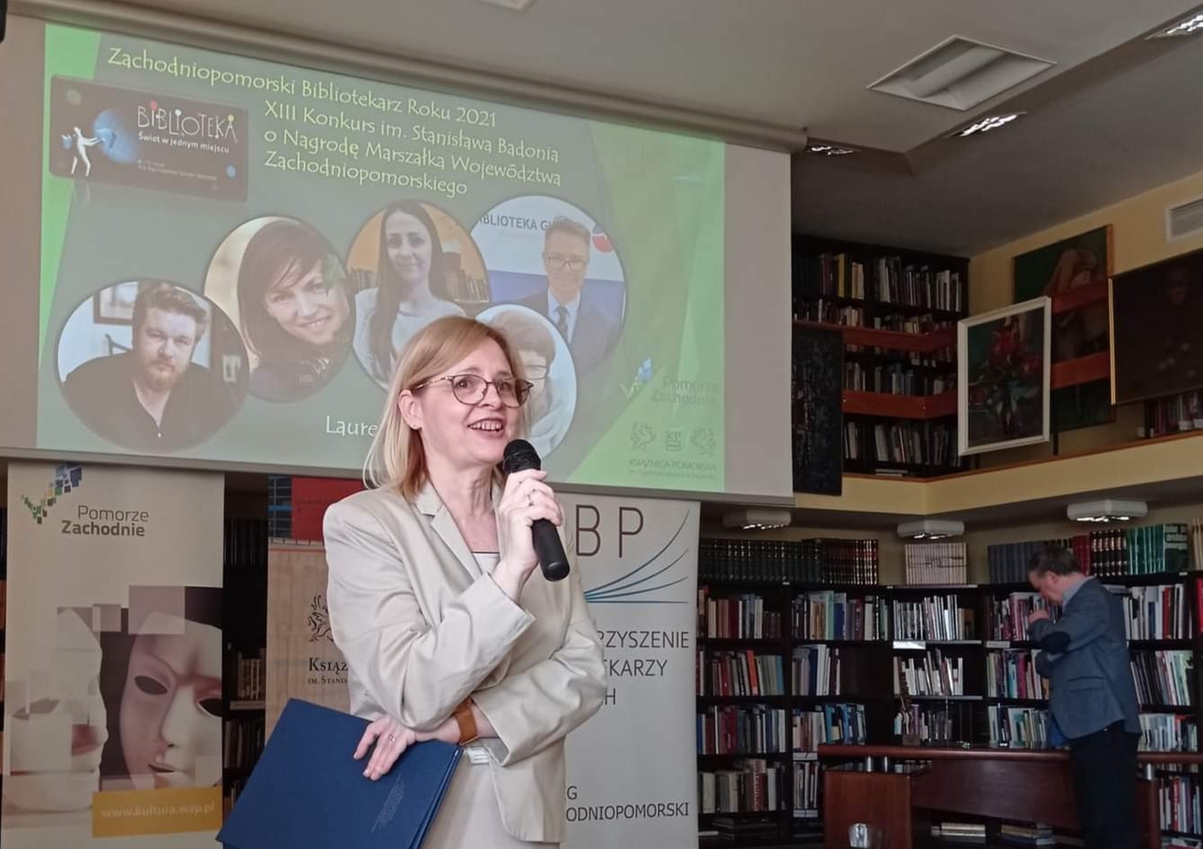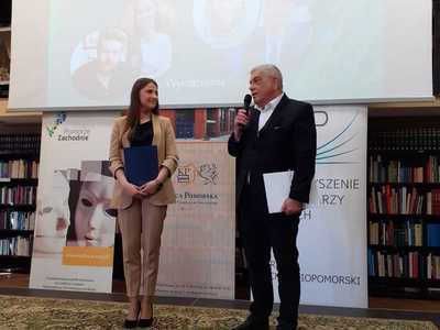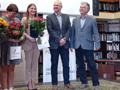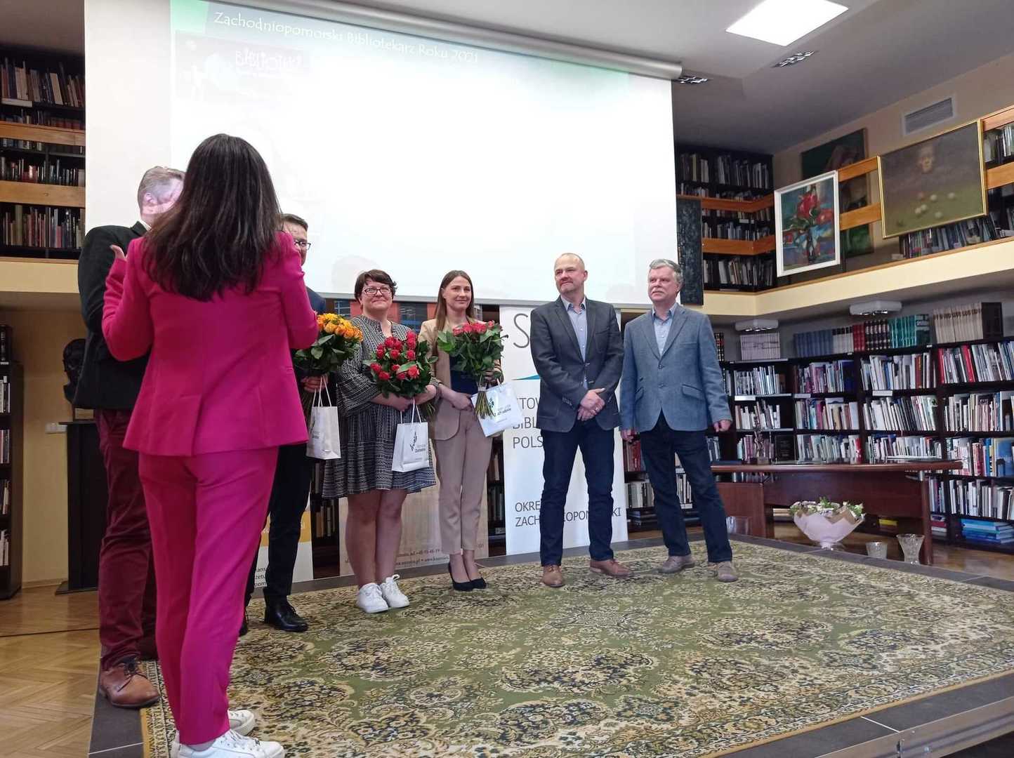 Ponadto w trakcie Inauguracji Tygodnia Bibliotek Pani Monika 呕emojtel– Dyrektor Biblioteki w Bobolicach otrzyma艂a wyró偶nienie w XIII edycji Konkursu im. Stanis艂awa Badonia ,,Bibliotekarz Roku 2021"o Nagrod臋 Marsza艂ka Województwa Zachodniopomorskiego.