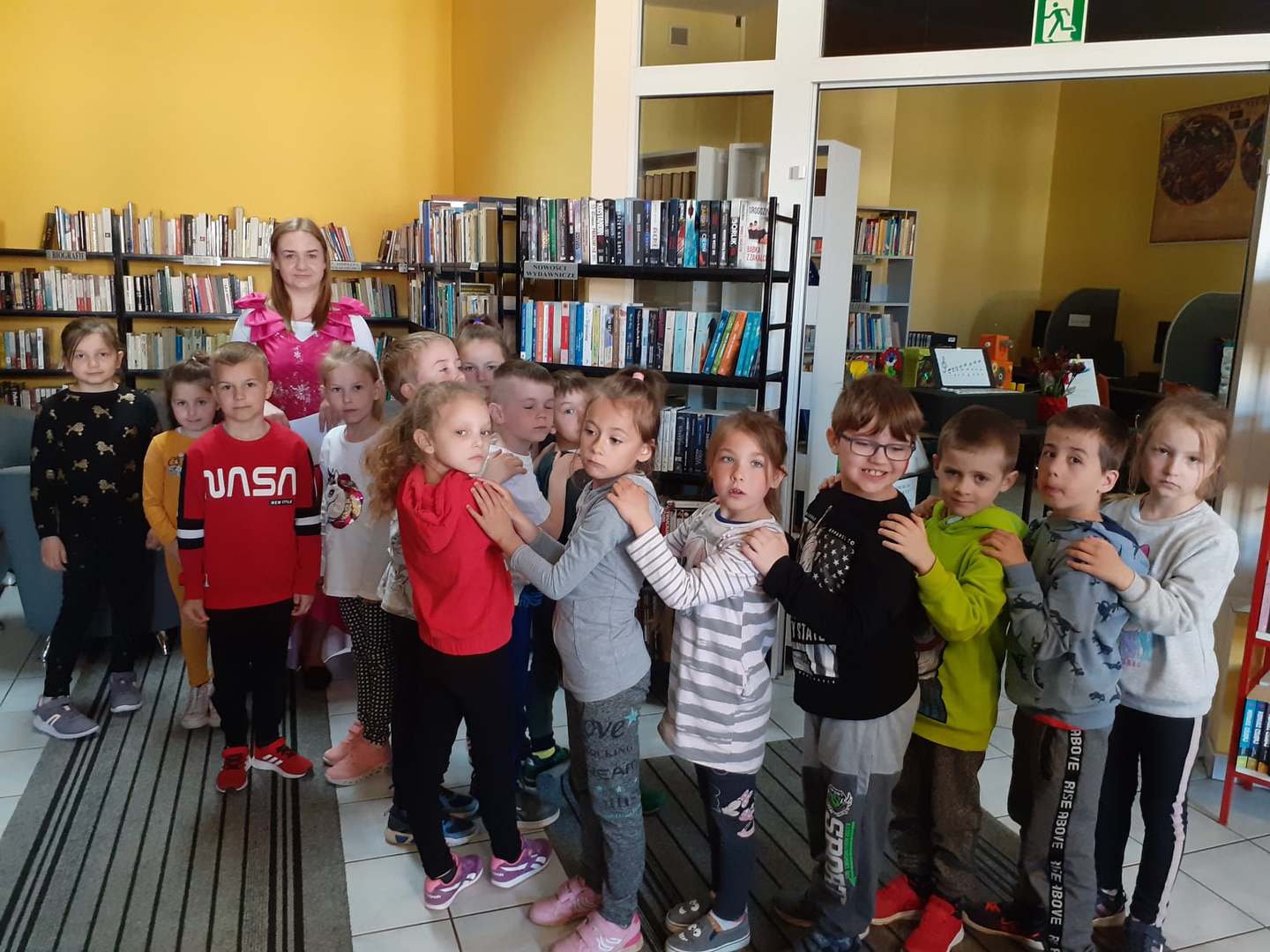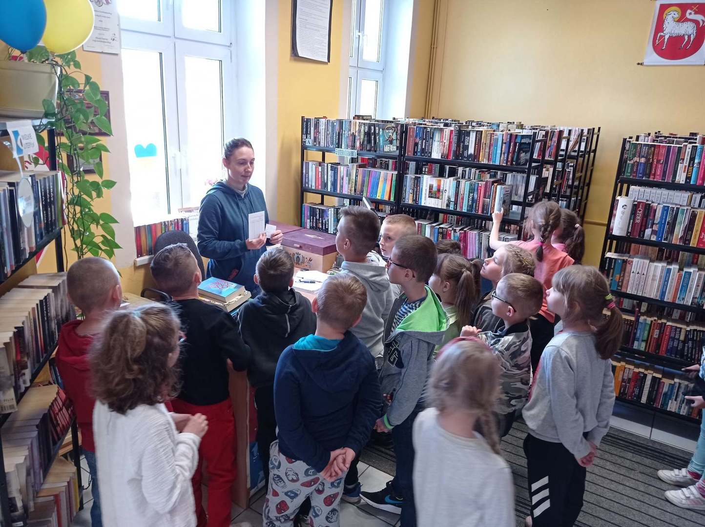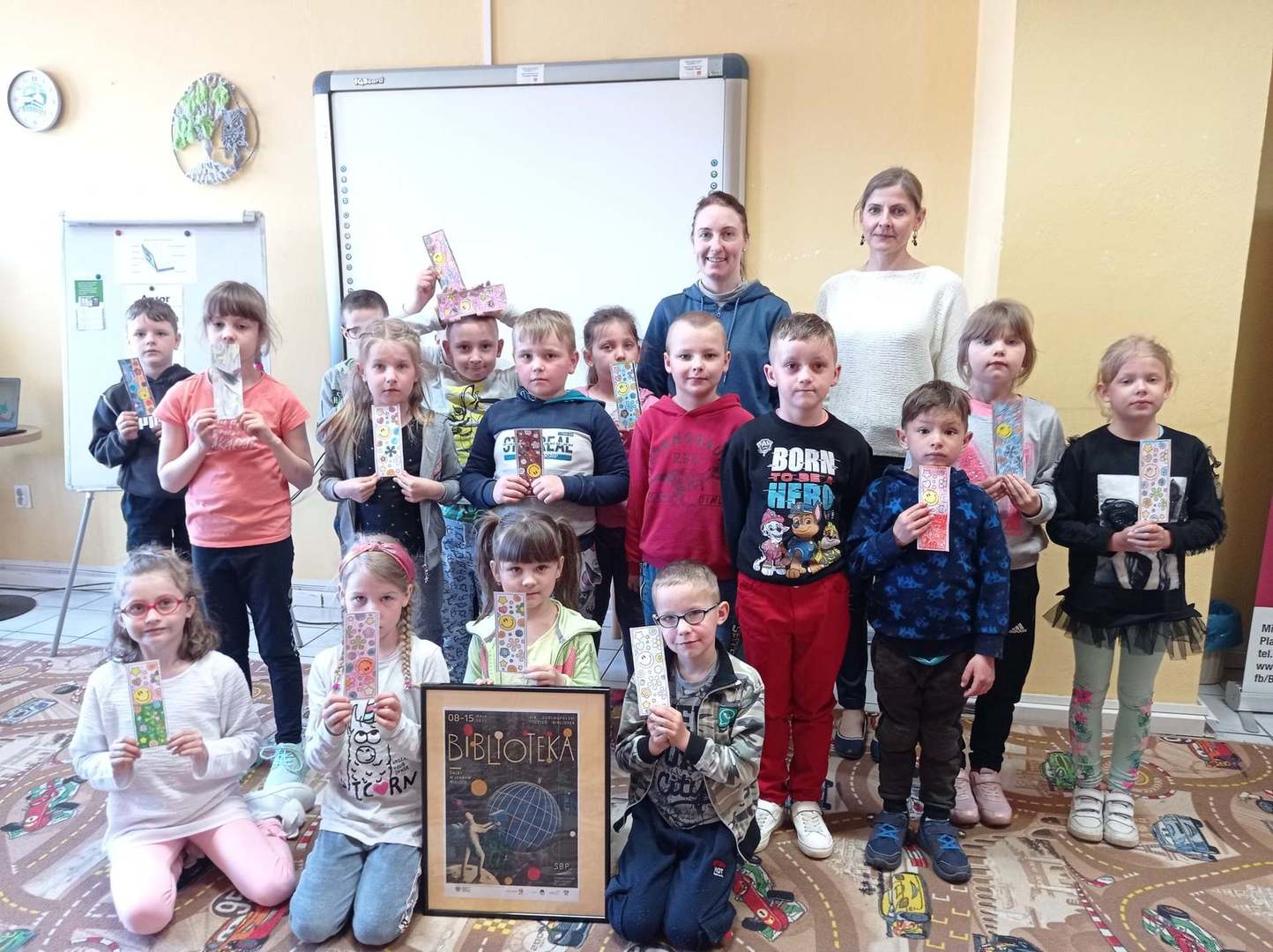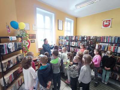 Rozpoczynamy obchody Tygodnia Bibliotek pn. "Świat w jednym miejscu". Dzisiaj odwiedzili nas uczniowie I klasy ze Szkoły Podstawowej im. Henryka Sienkiewicza na zajęcia "Jak zbudowana jest książka?" Wspólnie zwiedziliśmy wszystkie pomieszczenia biblioteki i poznaliśmy drogę książki od autora do czytelnika. Następnie dzieci kolorowały swoje własne zakładki i odgadywały różne zagadki. Drugą grupą gości okazały się przedszkolaki z p. Aurelią Karolik na zajęcia pn. "Tu mieszkają książeczki". Dzieci miały za zadanie odczarować krainę baśni i bajek. Z wykonaniem zadań poradziły sobie doskonale i na zakończenie zostały pasowane na czytelnika. Bardzo się cieszymy i gratulujemy