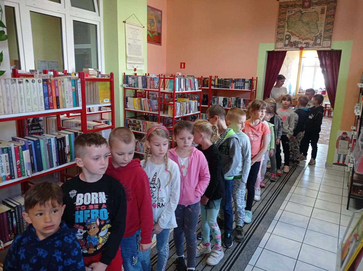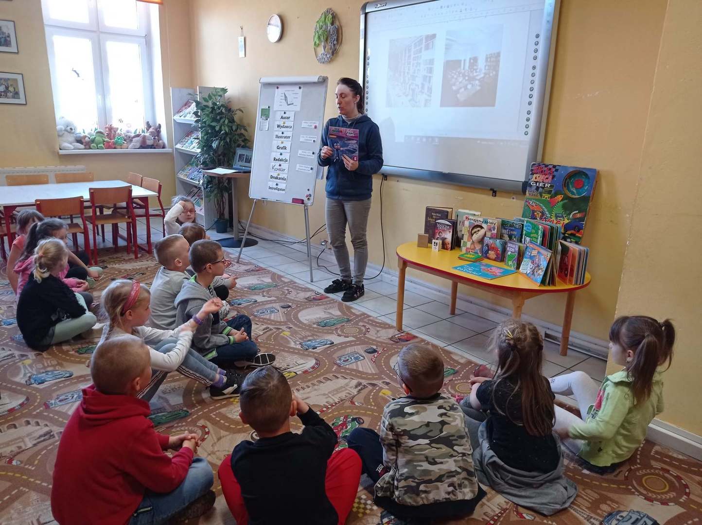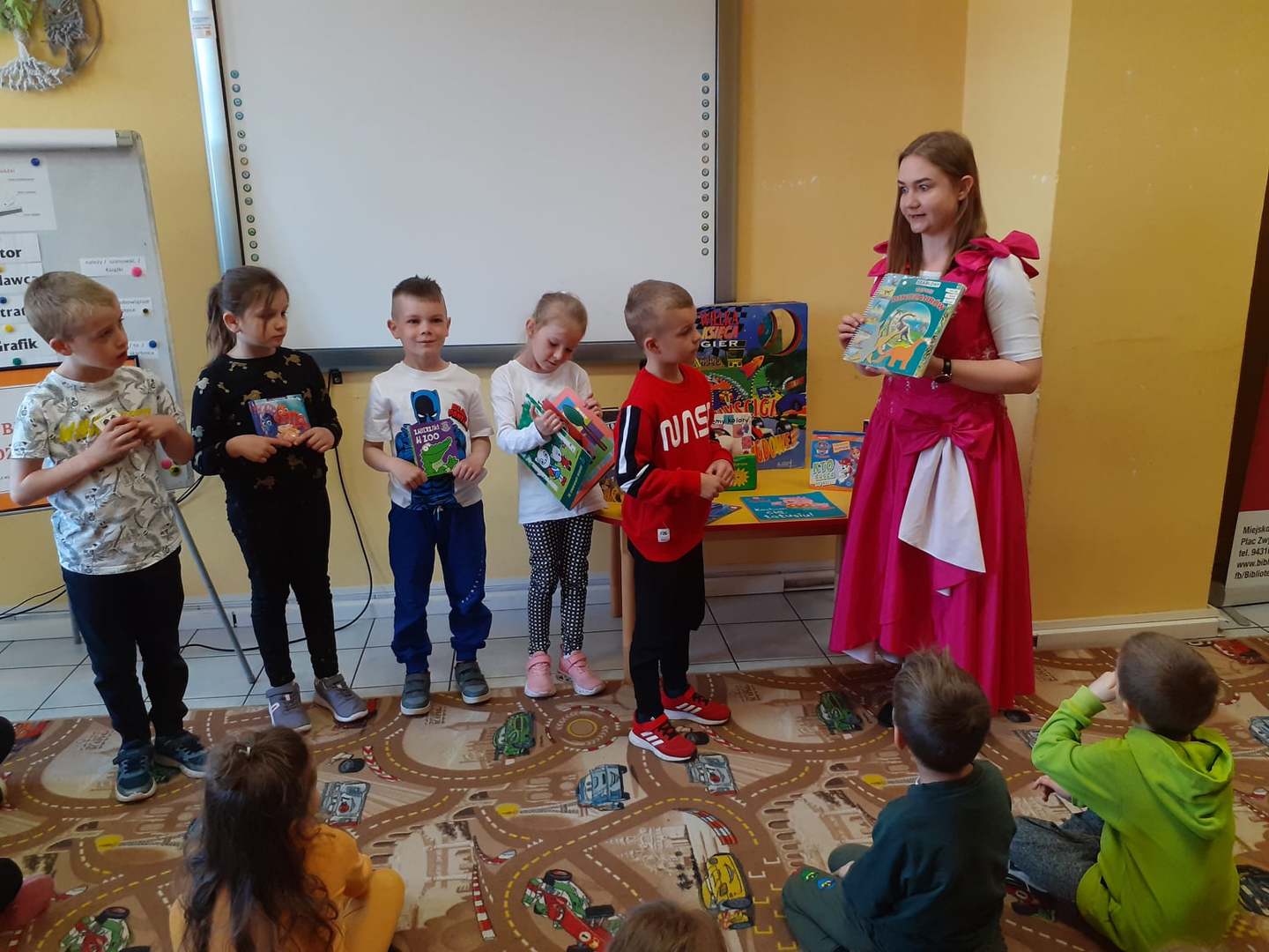 Rozpoczynamy obchody Tygodnia Bibliotek pn. "Świat w jednym miejscu". Dzisiaj odwiedzili nas uczniowie I klasy ze Szkoły Podstawowej im. Henryka Sienkiewicza na zajęcia "Jak zbudowana jest książka?" Wspólnie zwiedziliśmy wszystkie pomieszczenia biblioteki i poznaliśmy drogę książki od autora do czytelnika. Następnie dzieci kolorowały swoje własne zakładki i odgadywały różne zagadki. Drugą grupą gości okazały się przedszkolaki z p. Aurelią Karolik na zajęcia pn. "Tu mieszkają książeczki". Dzieci miały za zadanie odczarować krainę baśni i bajek. Z wykonaniem zadań poradziły sobie doskonale i na zakończenie zostały pasowane na czytelnika. Bardzo się cieszymy i gratulujemy
