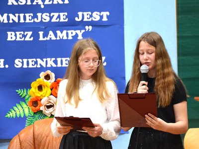 „W pustyni i w puszczy”. Ponadto recytatorzy zaprezentowali wiersze przedstawiające bohaterów wybranych utworów Sienkiewicza oraz ciekawostki z jego życia. Ciekawym uzupełnieniem programu były piosenki nawiązujące do twórczości