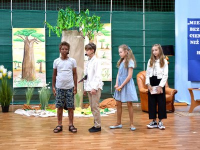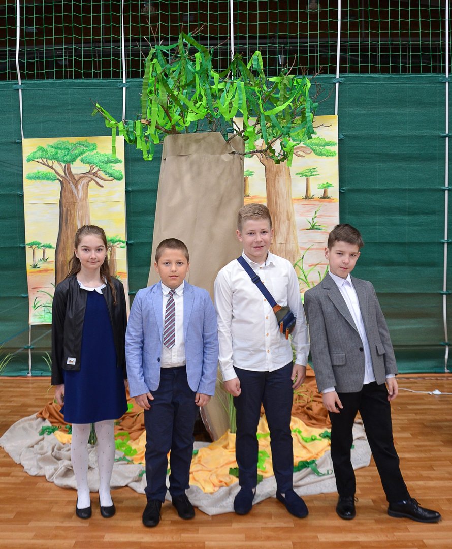 Program artystyczny prezentował sylwetkę Patrona oraz jego twórczość. Rozpoczęły go dzieci z klasy 3a, które zatańczyły poloneza. Następnie uczniowie przedstawili fragment wywiadu przeprowadzonego z pisarzem w 1916 r. oraz scenkę z powieści