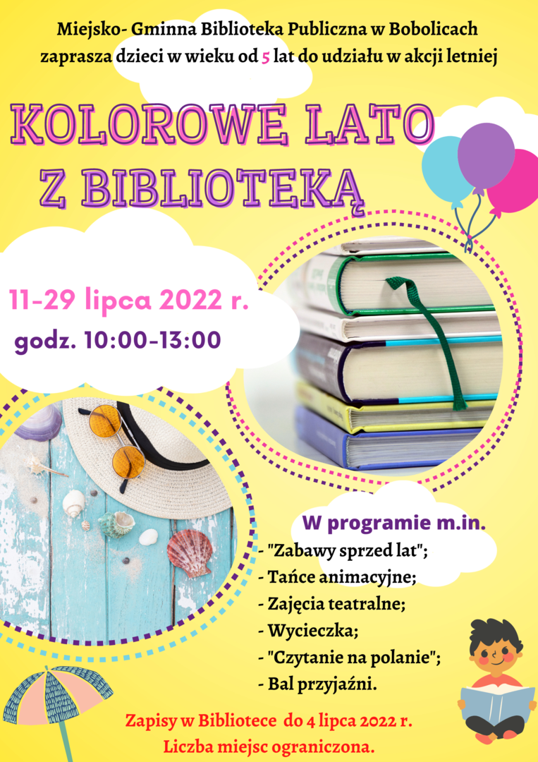 Wraz z Miejsko-Gminna Biblioteka Publiczna w Bobolicach ZAPRASZAMY na Kolorowe Lato