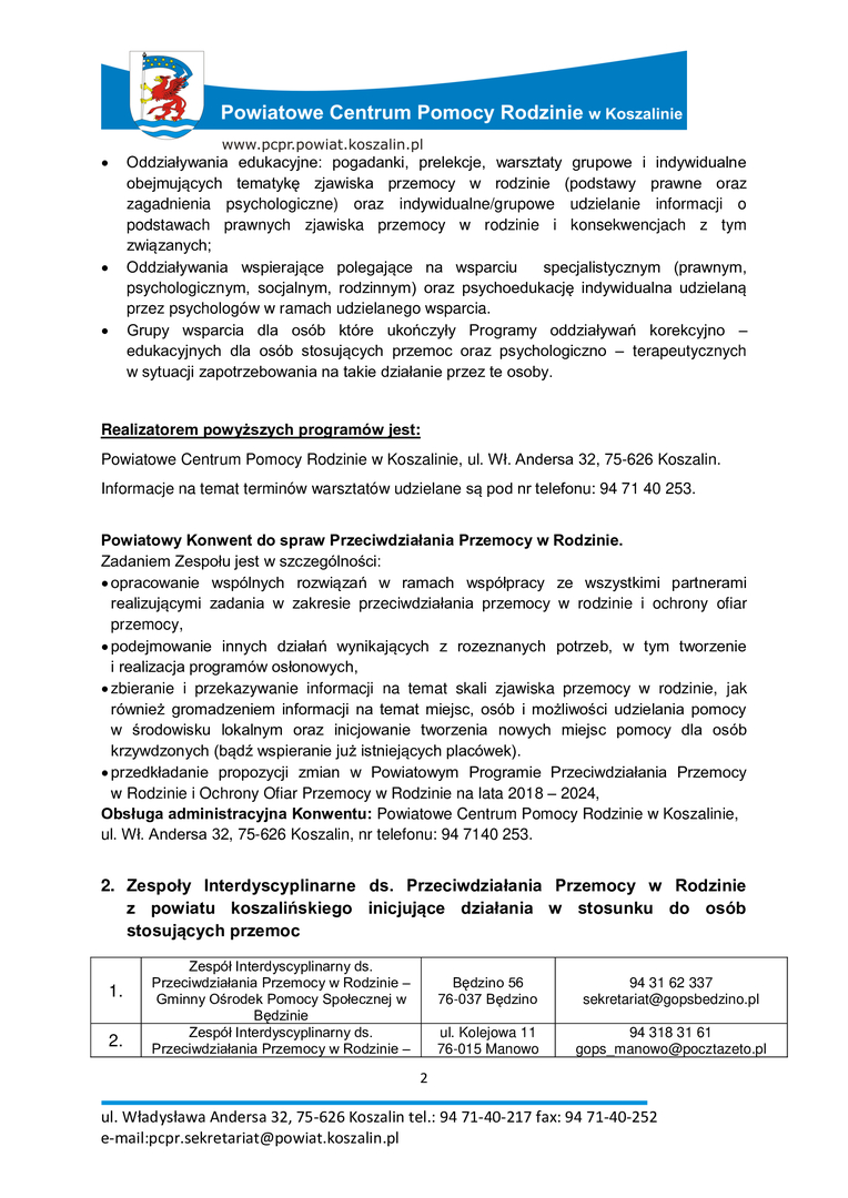 INFORMATOR zawierający dane teleadresowe instytucji rządowych i samorządowych, podmiotów oraz organizacji pozarządowych, które realizują oferty dla osób stosujących przemoc w rodzinie