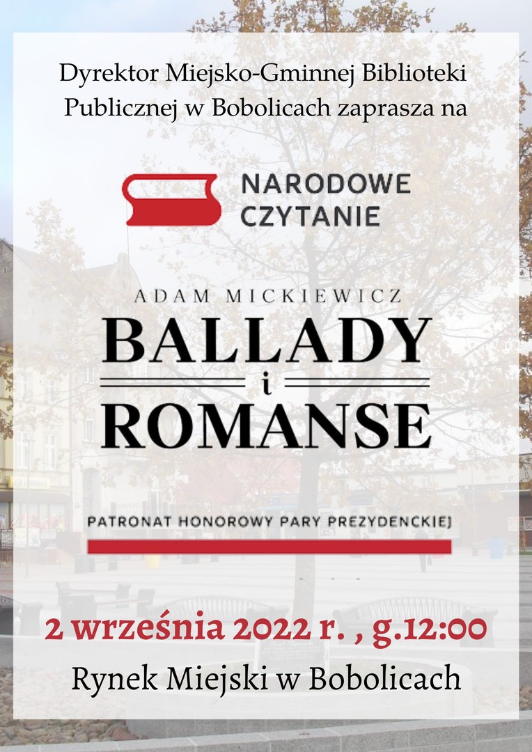 Narodowe Czytanie - 2 września 2022 r. godz. 12.00 Rynek Miejski w Bobolicach (Plac Zwycięstwa)