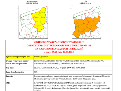 Ostrzeżenie meteorologiczne - burze z gradem⛈🌩💨