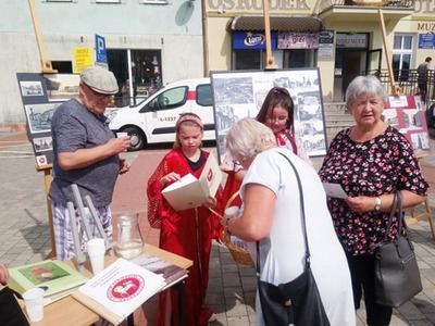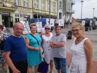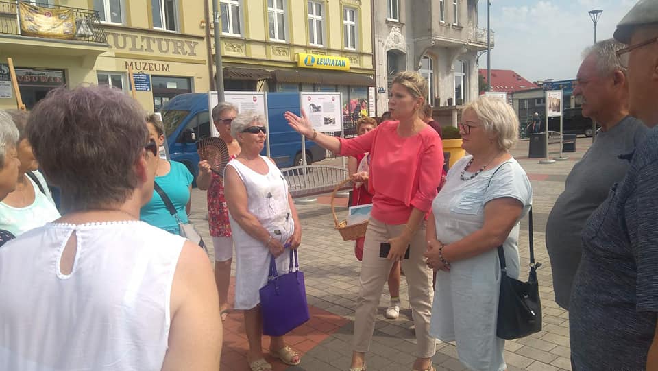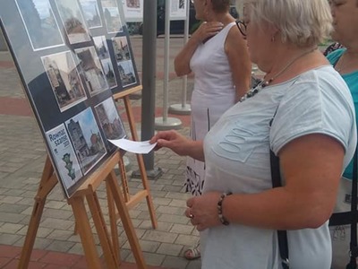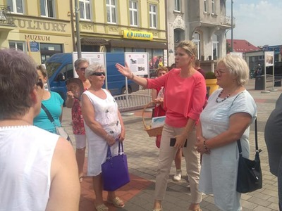 Uczestnicy wzięli udział w wyjątkowym spacerze z przewodnikiem podczas którego zaprezentowano wystawę dotyczącą historii miasta .