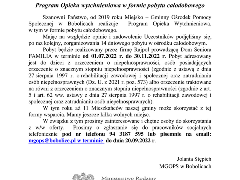 Geneva Trust Polska Sp. z o.o. Niepubliczny Zakład Opieki Zdrowotnej Profilaktyka i Diagnostyka zaprasza mieszkanki gminy Bobolice na bezpłatne badania mammograficzne w ramach Programu Profilaktyki Raka Piersi – Etap Podstawowy finansowany przez Zachodniopomorski Oddział Wojewódzki Narodowego Funduszu Zdrowia oraz Europejski Fundusz Społeczny w ramach Regionalnego Programu Operacyjnego Województwa Zachodniopomorskiego 2014-2022.